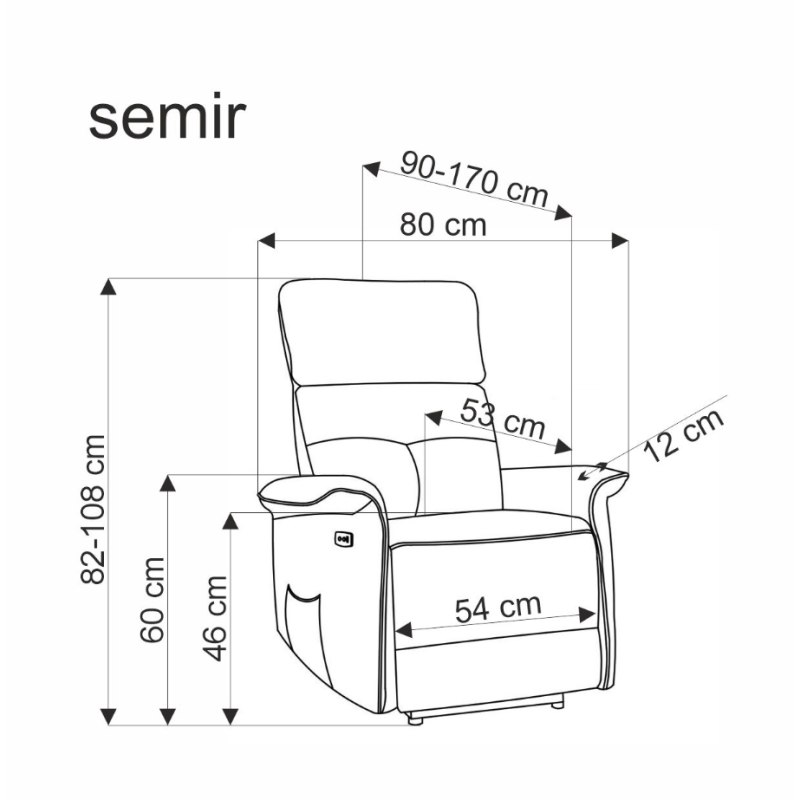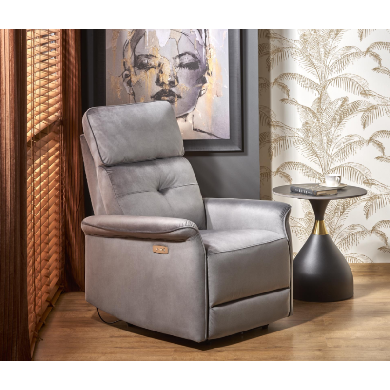 Fotel z funkcją elektrycznego rozkładania Semir /gniazdo USB, popielaty (2p1szt)