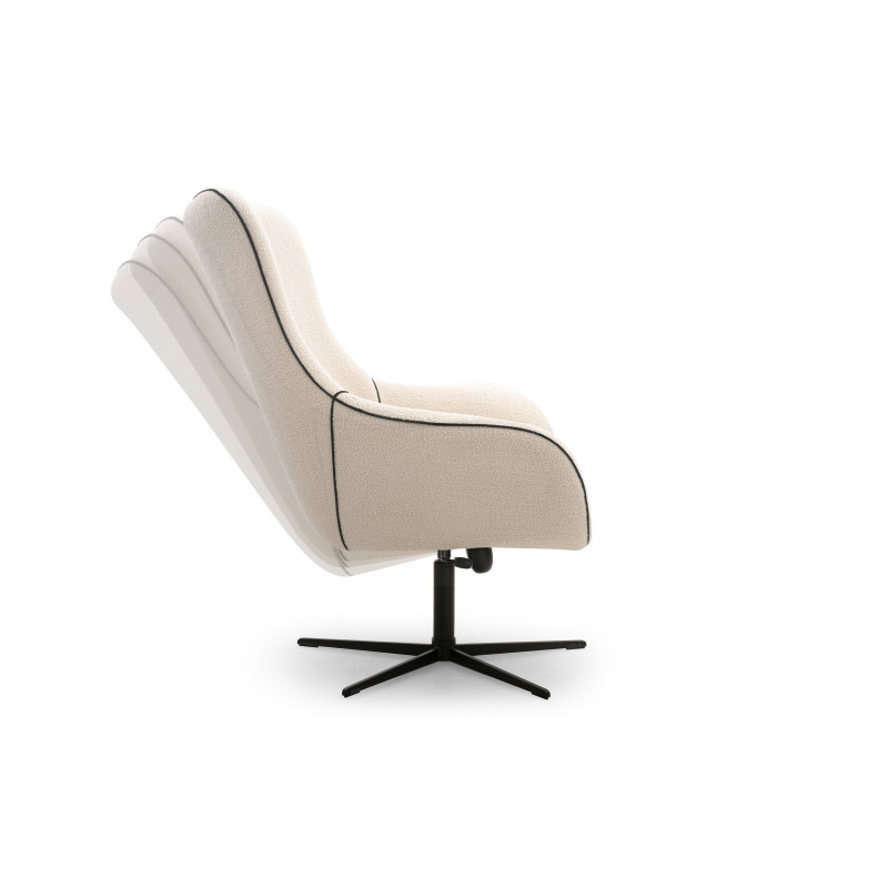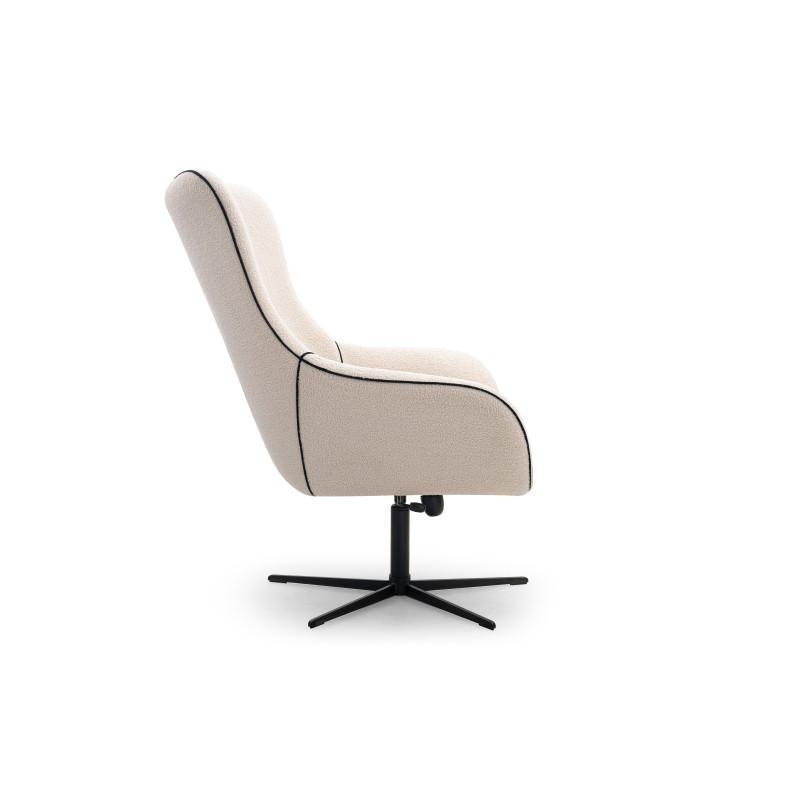 Niezwykle wygodny, nowoczesny fotel ELIS, posiadający mechanizm obrotowy i uchylny. Tkanina typu boucle oraz kontrastowe ozdobne szycie nadają szyku i elegancji. Doskonały wybór do salonu, gabinetu lub biura.