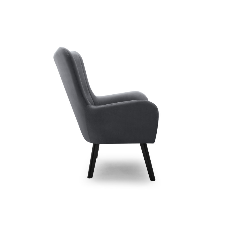 Fotel TED to doskonały wybór do salonu, gabinetu lub biura. Posiada ergonomiczne kształty, gwarantujące wygodę oraz niezwykły wygląd, przyciągający spojrzenia - ciekawe kształty, pionowe przeszycia oraz czarne, drewniane nogi.