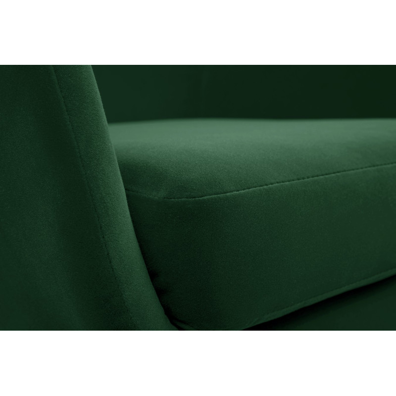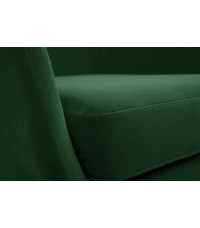 Fotel Ezo w tkaninie MONO 227 zachwyca eleganckim, głębokozielonym kolorem i subtelnym połyskiem materiału, który przypomina aksamit. Tapicerowane plecy oraz miękkie siedzisko z pianki PUR gwarantują wygodę, nawet podczas długiego wypoczynku. Smukła konstrukcja na czarnych, metalowych nóżkach nadaje mu lekkości, a jednocześnie nowoczesnego charakteru. Dzięki wysokiemu oparciu i ergonomicznie wyprofilowanym podłokietnikom fotel zapewnia doskonałe podparcie dla całego ciała. Wymiary 72,5 x 101,5 x 83 cm sprawiają, że Ezo doskonale odnajduje się zarówno w większych salonach, jak i bardziej kameralnych przestrzeniach. Głęboka zieleń pięknie komponuje się z jasnymi ścianami, drewnem lub złotymi dodatkami, tworząc wnętrze z klasą. To idealny wybór do salonu, gabinetu lub eleganckiego kącika do czytania.