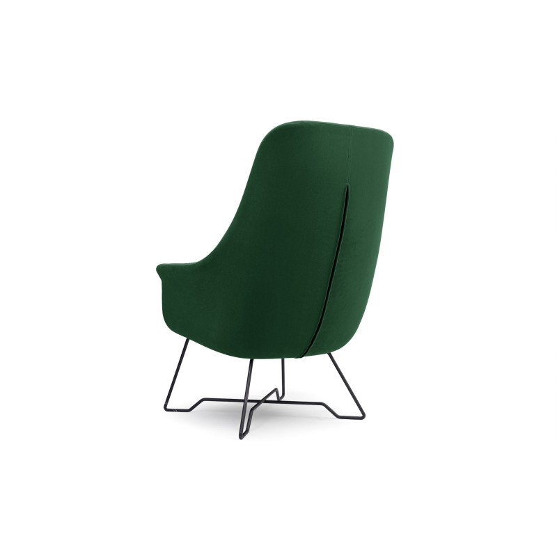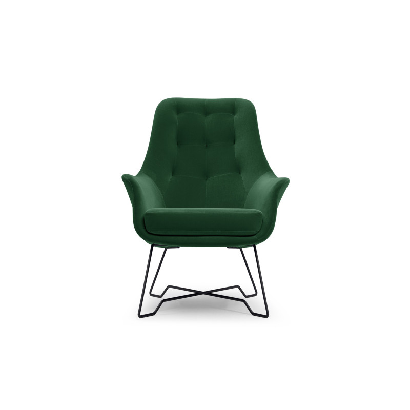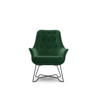 Fotel Ezo w tkaninie MONO 227 to połączenie klasycznej formy z nowoczesnym akcentem w postaci metalowych nóżek. Głęboka zieleń dodaje mu wyrafinowania i świetnie odnajduje się w przytulnych, stylowych wnętrzach. To mebel, który nie tylko zdobi, ale też zapewnia wyjątkowy komfort wypoczynku.