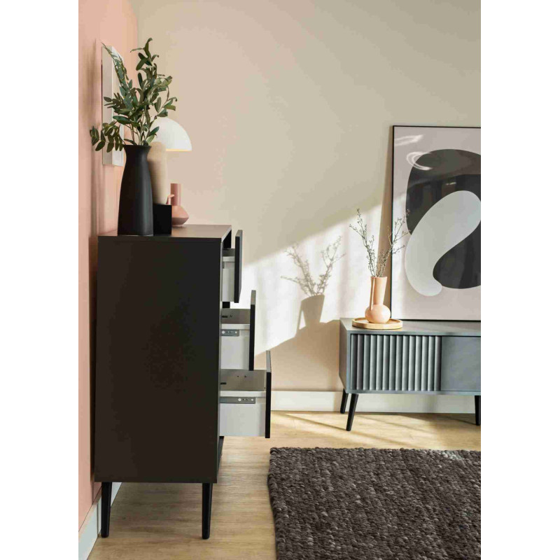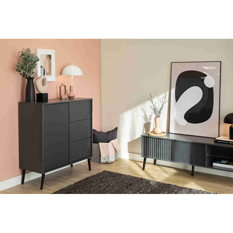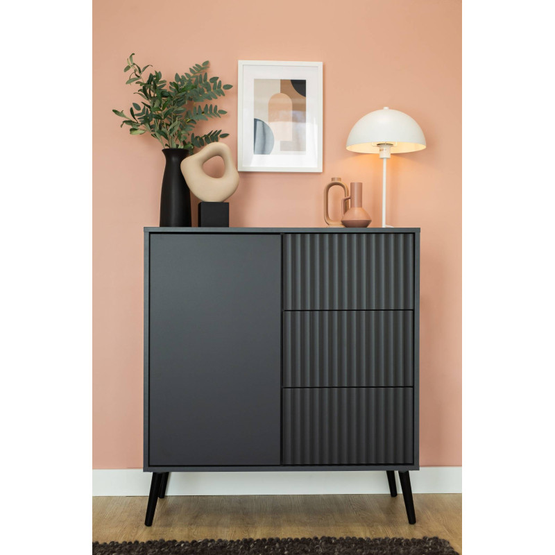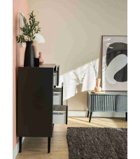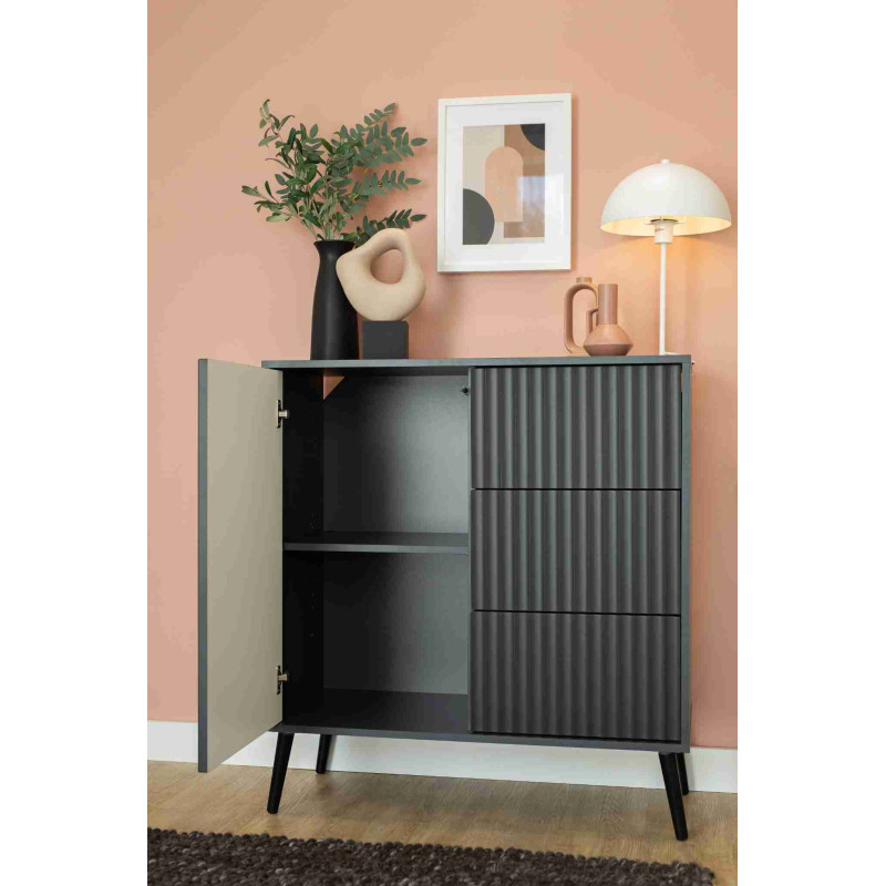 Jedną z wyjątkowych propozycji jest komoda na wysokich nóżkach, wyposażona w 3 szuflady i pakowną szafkę. Dzięki przemyślanej konstrukcji zyskasz dużo miejsca do przechowywania, a jednocześnie zadbasz o ład i porządek w pomieszczeniu
