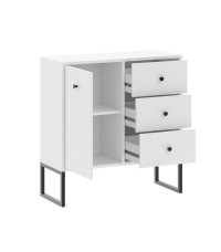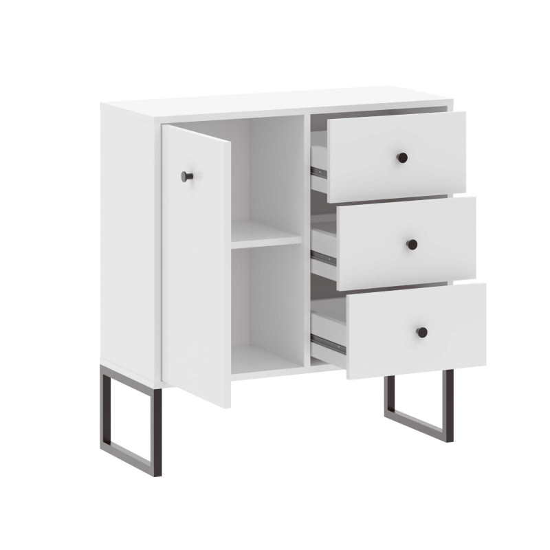 Kolekcja mebli Linea zrealizowana w bardzo nowoczesnym stylu. Białe lub kaszmirowe korpusy oraz fronty, ozdobione metalowymi uchwytami w półmatowym czarnym kolorze. Mebel na metalowych, kwadratowych i prostych nogach, również w półmatowym, czarnym kolorze.