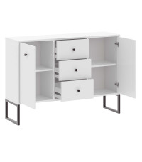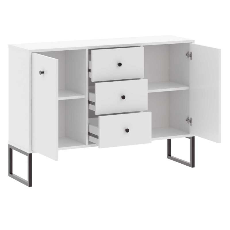 Kolekcja mebli Linea zrealizowana w bardzo nowoczesnym stylu. Białe lub kaszmirowe korpusy oraz fronty, ozdobione metalowymi uchwytami w półmatowym czarnym kolorze. Mebel na metalowych, kwadratowych i prostych nogach, również w półmatowym, czarnym kolorze.