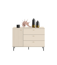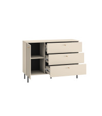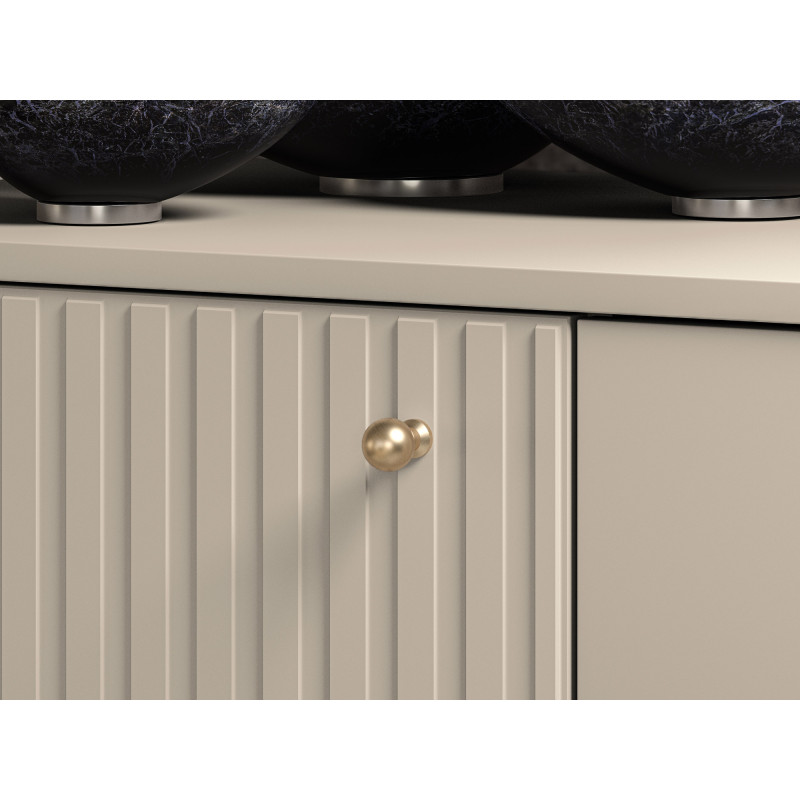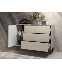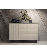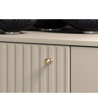 Meble z kolekcji Sophie to idealny wybór do współczesnego salonu czy sypialni. Dzięki systemowi złożonemu z jedenastu brył urządzisz swoje wymarzone wnętrze. Kaszmirowy dekor to niebanalny i ponadczasowy kolor, nazywany nowym białym. Frezowane fronty MDF podkreślają wyrafinowanie i elegancję całej kolekcji. Dyskretne czarne nóżki dodają bryłom efektownej lekkości. Kropką nad i, dodatkowo budującą estetykę wszystkich mebli Sophie są uchwyty ze szczotkowanego metalu, w złotym wybarwieniu.