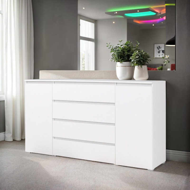 Subtelna, a jednocześnie efektowna komoda Cosmo C06 wprowadza do pomieszczenia świeżość i lekkość. Jej minimalistyczna forma doskonale współgra z nowoczesnymi aranżacjami, tworząc przestrzeń pełną ładu i elegancji. Komoda duża Cosmo C06 biała to mebel, który łączy estetykę z praktycznym zastosowaniem – idealny do przechowywania zarówno tekstyliów, jak i dekoracyjnych akcesoriów. Gładkie fronty i prosta linia sprawiają, że komoda Cosmo C06 staje się nie tylko funkcjonalnym elementem wyposażenia, lecz także stylową ozdobą każdego wnętrza.