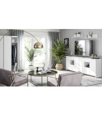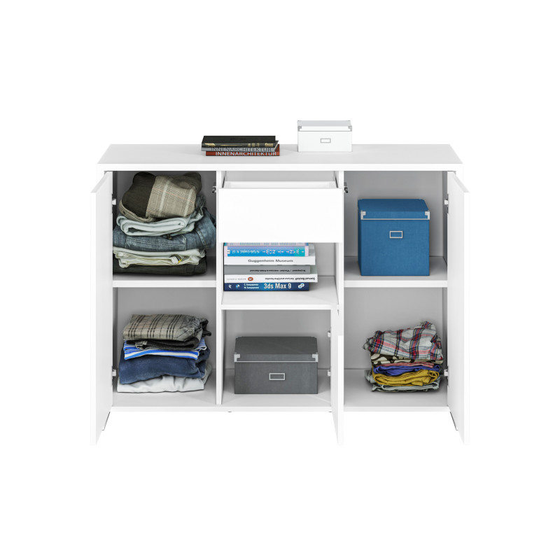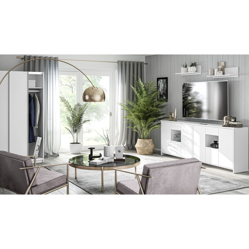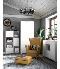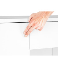 KENDO to zestaw siedmiu praktycznych i uniwersalnych mebli do pokoju dziennego, pokoju nastolatka, sypialni czy domowego biura. Dwa optymalne biurka, gwarantujące komfort pracy i nauki, dwie nowoczesne i pojemne komody, dwie szafy – duża z przesuwnymi drzwiami oraz mniejsza z systemem otwierania drzwi push to open – oraz praktyczna półka wisząca to elementy uniwersalnej i minimalistycznej kolekcji białych mebli pasujących do każdego współczesnego wnętrza. Białe meble rozjaśnią i powiększają optycznie przestrzeń, a geometria i bezuchwytowość brył podkreśli nowoczesny charakter pomieszczenia.