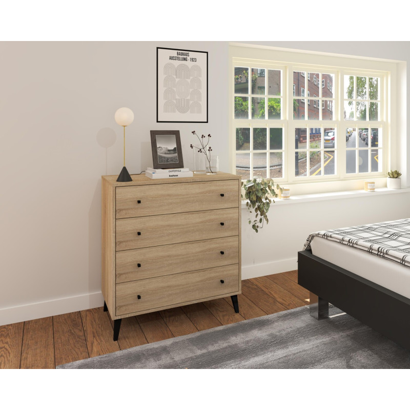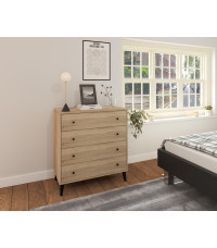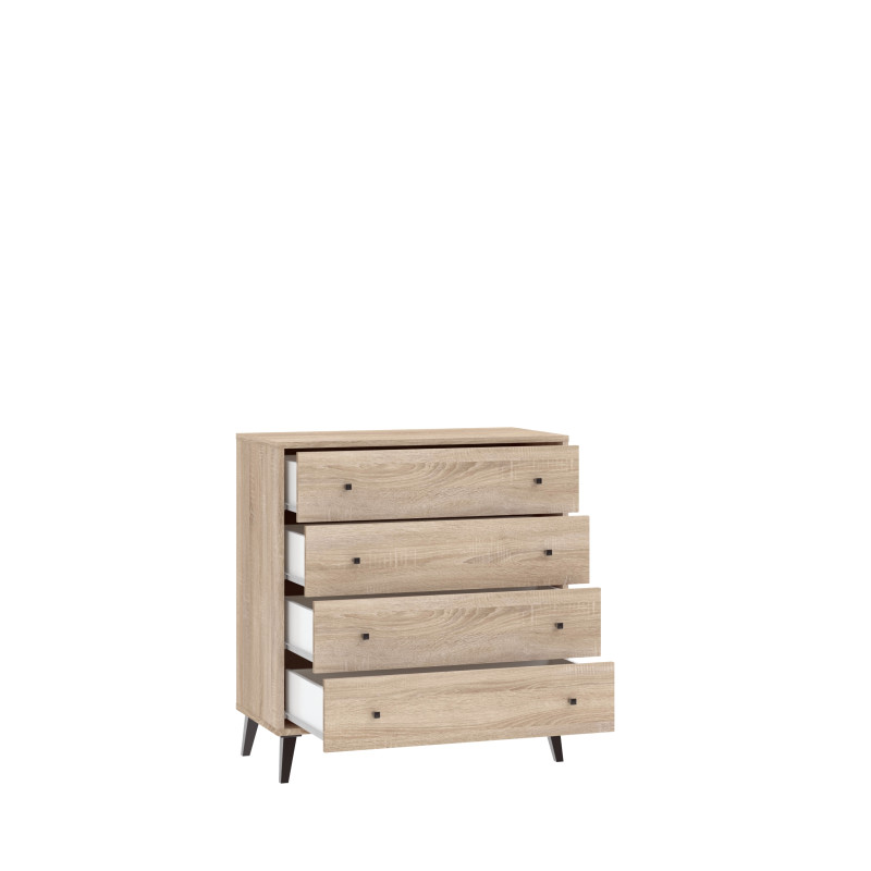 Komoda SALFORD w wersji sonoma to uniwersalny mebel, który świetnie sprawdzi się w salonie, sypialni czy przedpokoju. Cztery pojemne szuflady pomogą uporządkować codzienne drobiazgi, dokumenty czy odzież. Naturalny dekor drewna dodaje wnętrzu ciepła i ponadczasowego stylu.