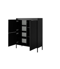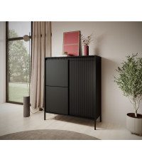 Komoda wysoka Senso A w eleganckim czarnym kolorze to mebel, który wnosi do wnętrza nowoczesny charakter i funkcjonalność. Dzięki wysokości 123,4 cm i szerokości 103,5 cm, doskonale sprawdzi się w przestronnych salonach, zapewniając mnóstwo miejsca do przechowywania. Jej minimalistyczna forma i czarny odcień wkomponują się w każde nowoczesne wnętrze, nadając mu szyku i porządku.