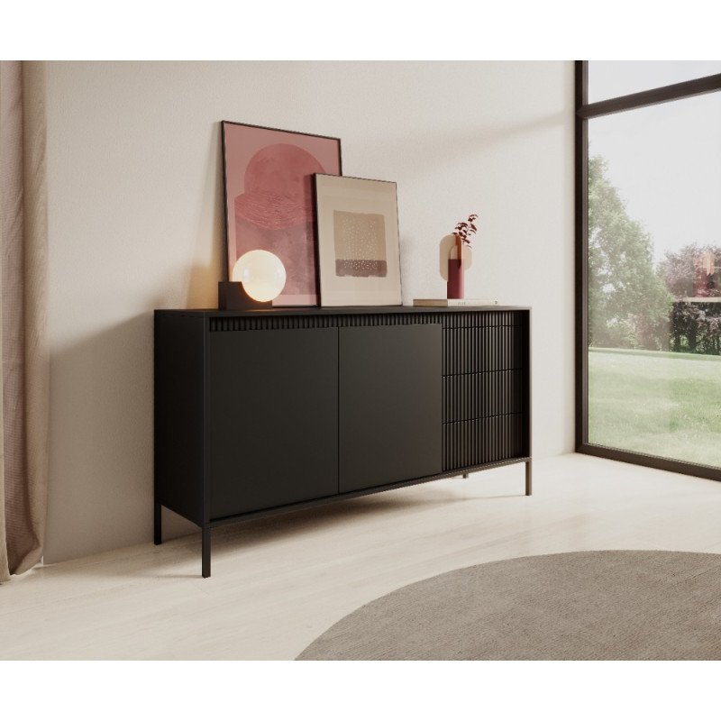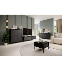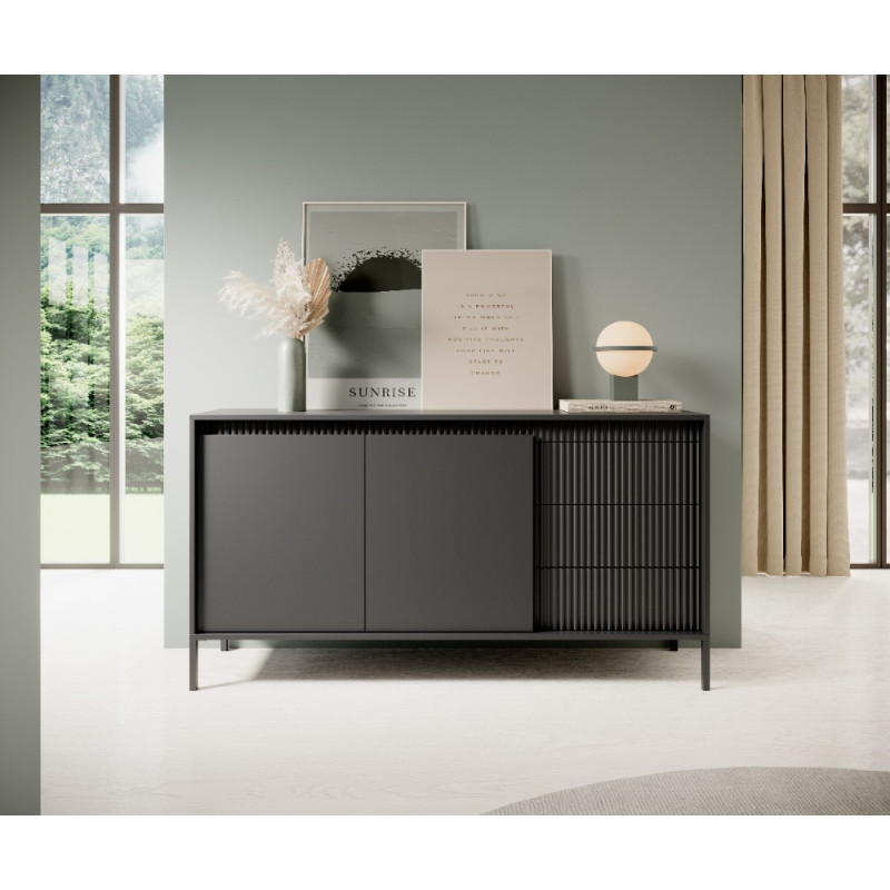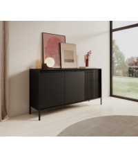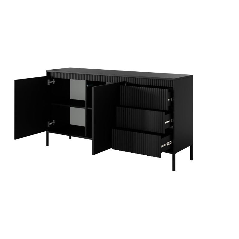 Komoda 153 2D3S w odcieniu głębokiej czerni to doskonały wybór do nowoczesnych salonów, które stawiają na funkcjonalność i styl. Dzięki połączeniu przestronnych szuflad i półek, oferuje mnóstwo miejsca na przechowywanie drobiazgów, zachowując przy tym elegancki wygląd. Jej minimalistyczna forma w czerni idealnie komponuje się z innymi elementami wystroju, nadając wnętrzu subtelnej klasy i nowoczesności.