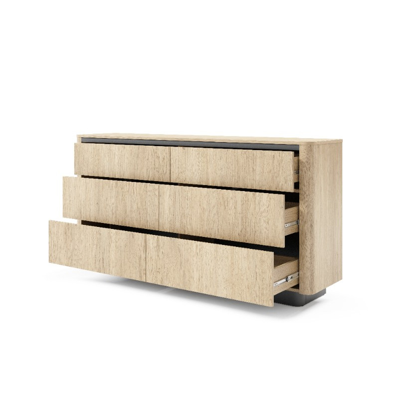 Komoda Torro 163 6s to przestronny mebel, który łączy nowoczesny design z funkcjonalnością, doskonale sprawdzający się w sypialni, salonie czy przedpokoju. Z szerokością 163,2 cm, wysokością 82,9 cm i głębokością 38,1 cm oferuje sześć pojemnych szuflad, które zapewniają wygodne przechowywanie różnych przedmiotów – od ubrań po drobiazgi codziennego użytku. Wykonana z płyty wiórowej laminowanej w kolorze dąb cremona, komoda ma elegancki wygląd, a czarne akcenty, takie jak cokół i ozdobna listwa, dodają jej charakteru. System push-to-open pozwala na bezuchwytowe otwieranie szuflad, co nadaje meblowi minimalistyczny i nowoczesny wygląd. Kulkowe prowadnice z pełnym wysuwem oraz zawiasy bliźniacze zapewniają płynność i komfort użytkowania, a cichy domyk zwiększa wygodę. Komoda Torro 163 6s to świetny wybór dla osób, które szukają funkcjonalnego mebla z ponadczasowym designem, który będzie służył przez wiele lat.