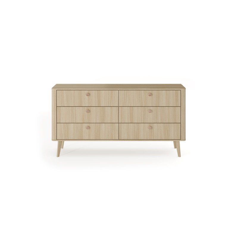 Komoda Viki 163 6S to elegancki mebel, który idealnie łączy funkcjonalność z nowoczesnym designem. Sześć przestronnych szuflad w kolorze dąb barista zapewnia wygodę przechowywania, a drewniane uchwyty w odcieniu mocca dodają jej naturalnego uroku. Dzięki swojej klasycznej formie, komoda doskonale wpasuje się w różnorodne wnętrza, od sypialni po salon.