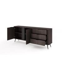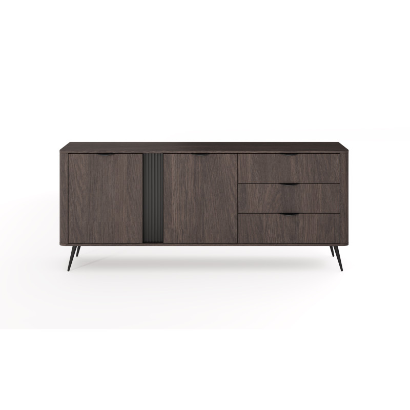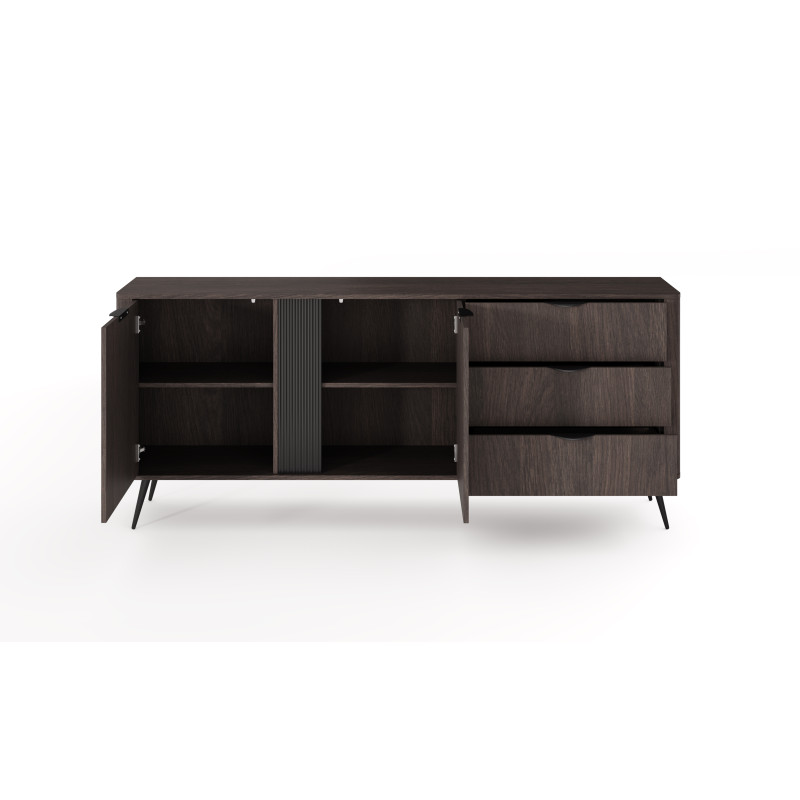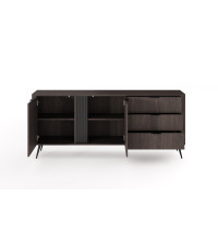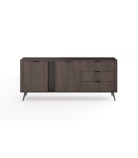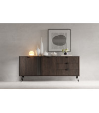 Komoda 195 2d3s z serii Veris to stylowy i funkcjonalny mebel, który znakomicie uzupełni Twoje wnętrze. Wykonana z laminowanej płyty w kolorze dąb dunin z czarnymi detalami, będzie pięknym akcentem w salonie lub jadalni. Dzięki pojemnym szufladom i drzwiom zapewnia wygodne miejsce do przechowywania.