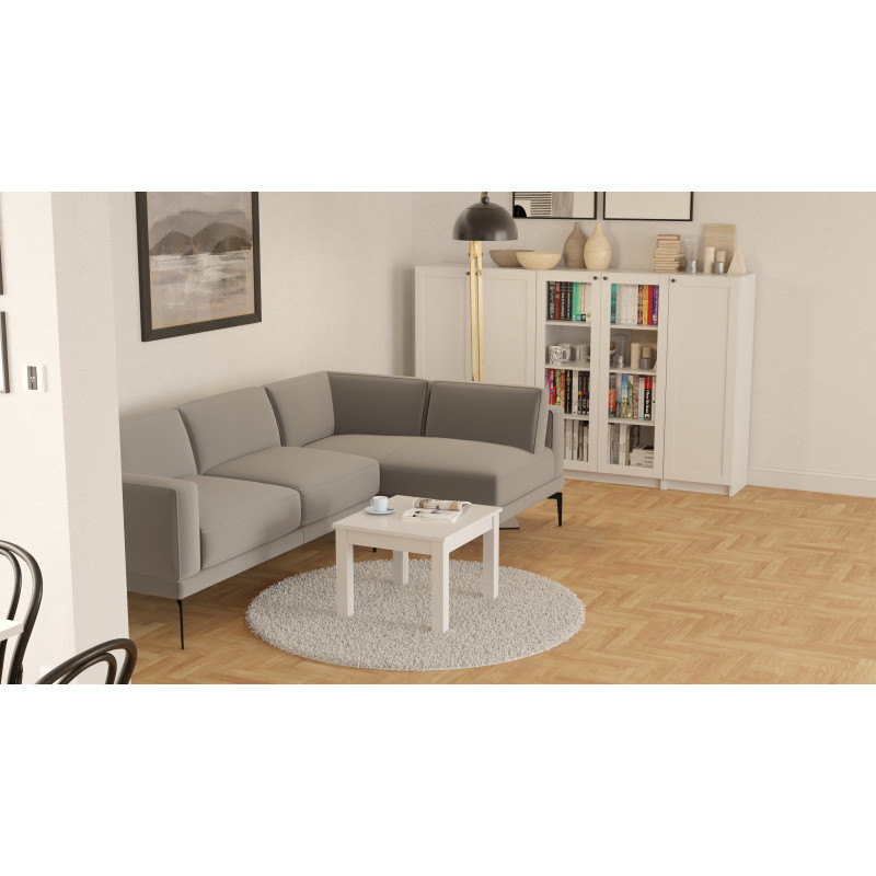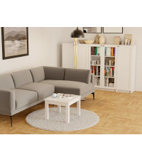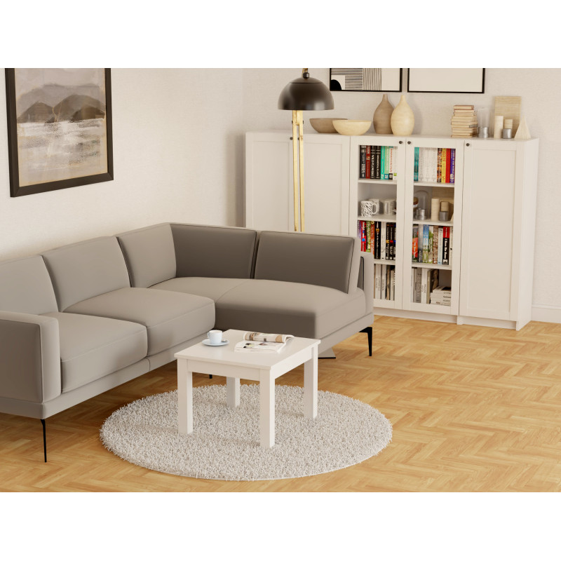 Nowoczesny, biały stolik kawowy, który doskonale wpasuje się w różnorodne wnętrza. Blat i listwy boczne wykonane z laminowanej płyty o grubości 16 mm, co zapewnia trwałość i elegancki wygląd. Nogi z laminowanego MDF o profilu 50x50 mm gwarantują stabilność, a dodatkowe ślizgi pod nogami chronią podłogę i umożliwiają łatwe przesuwanie. Jego prostota i uniwersalny design sprawiają, że stolik doskonale pasuje do salonu, sypialni czy biura, tworząc idealne miejsce na relaks lub spotkania towarzyskie.