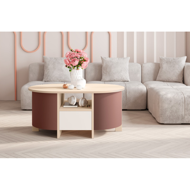 Ława LUMIA w efektownym połączeniu cappuccino, bordo i kaszmiru to mebel, który wnosi do wnętrza harmonię i wyrafinowanie. Jej owalny kształt oraz aksamitne matowe wykończenie tworzą elegancką i przytulną przestrzeń. Idealna do wnętrz, które cenią sobie styl i funkcjonalność.