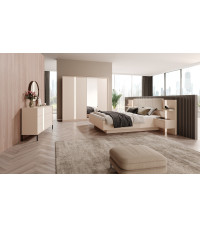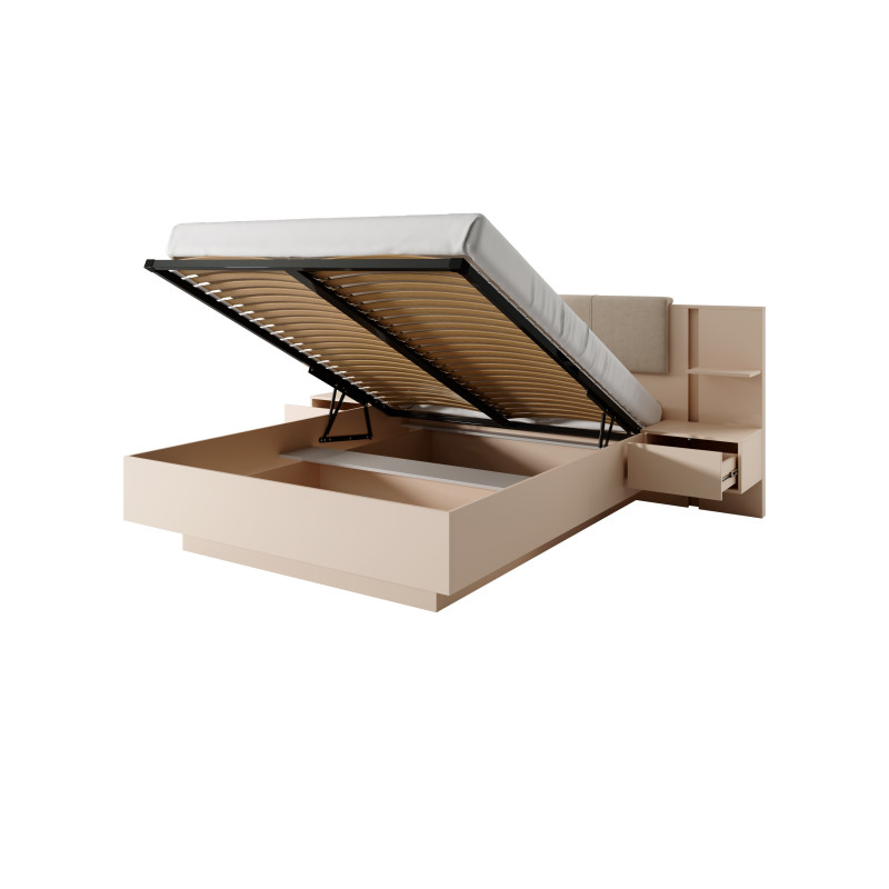 Dast H łóżko z pojemnikiem i stolikami nocnymi - Beż