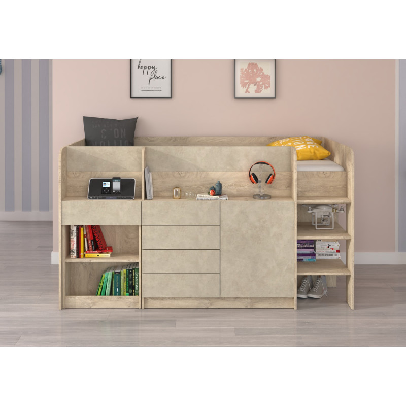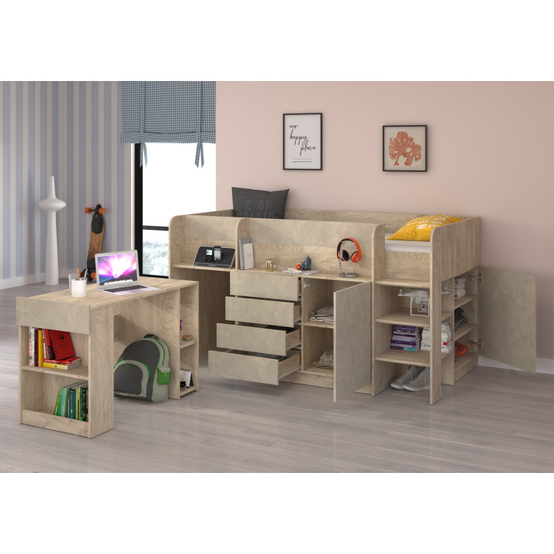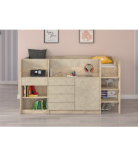 Łóżko piętrowe z biurkiem Smile prawe Dąb endgrain/Granada migdał