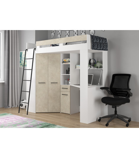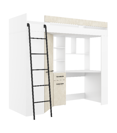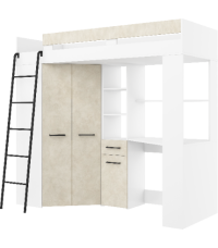 Łóżko piętrowe Floor L z biurkiem i szafą Biały/Granada migdał