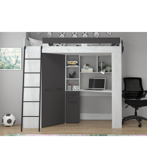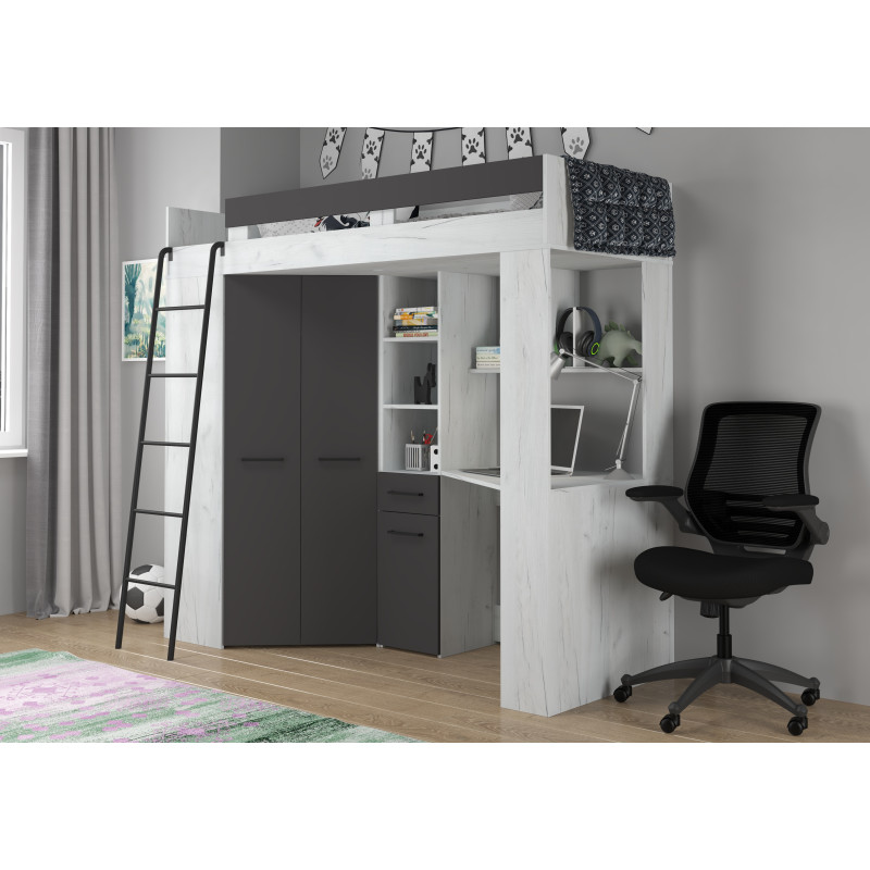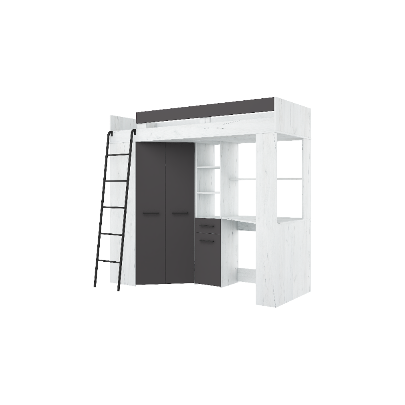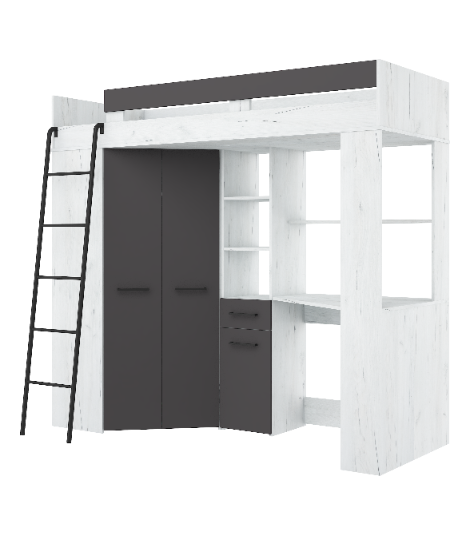 Łóżko piętrowe Floor L z biurkiem i szafą Craft biały/Grafit