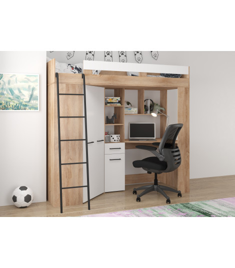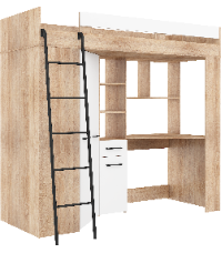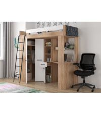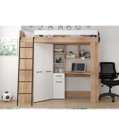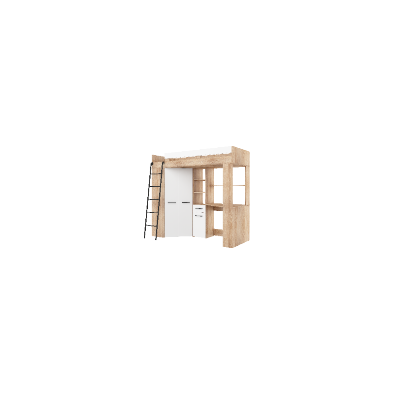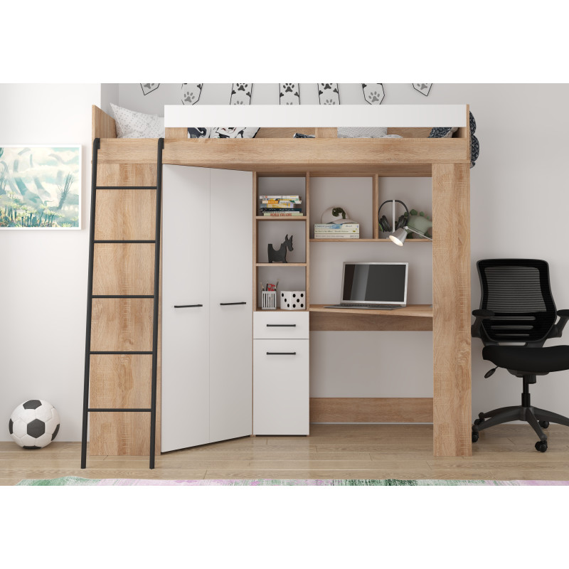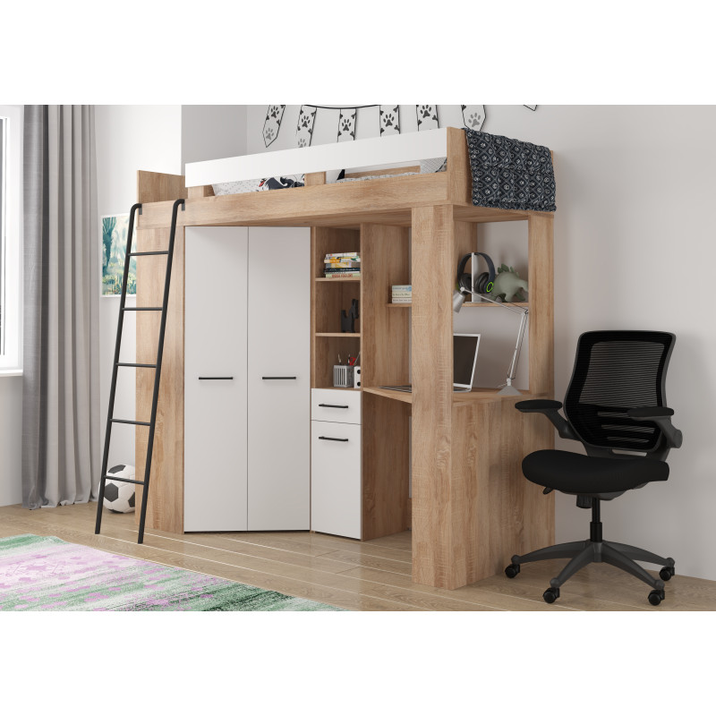 Łóżko piętrowe Floor L z biurkiem i szafą Sonoma jasna/Biały