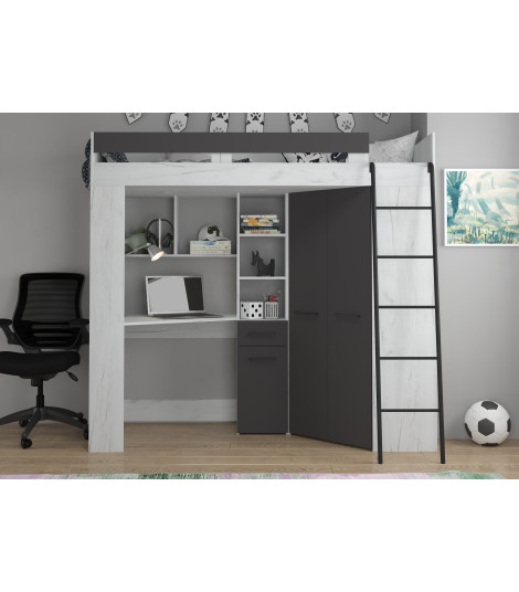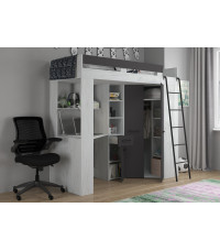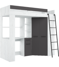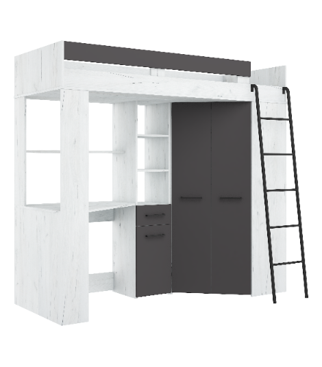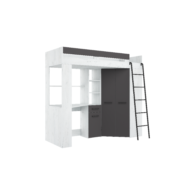 Łóżko piętrowe Floor P z biurkiem i szafą Craft biały/Grafit