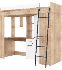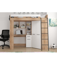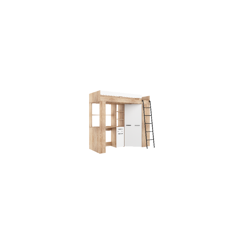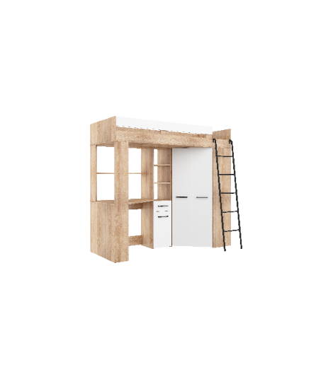Łóżko piętrowe Floor P z biurkiem i szafą Sonoma jasna/Biały