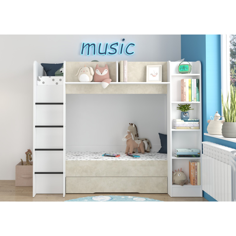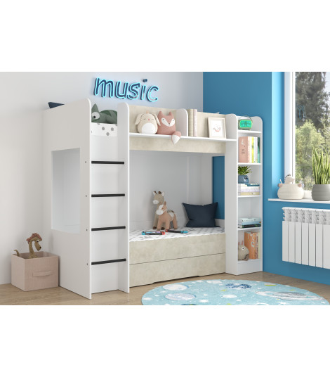 Łóżko piętrowe Everest L z szufladą Biały/Granada migdał