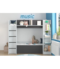 EVEREST L to nowoczesne łóżko piętrowe, które łączy funkcjonalność z oszczędnością miejsca. Zestawienie kolorów Craft biały i grafit nadaje mu elegancki wygląd, a dodatkowe elementy, jak regał i szuflada, ułatwiają codzienną organizację.