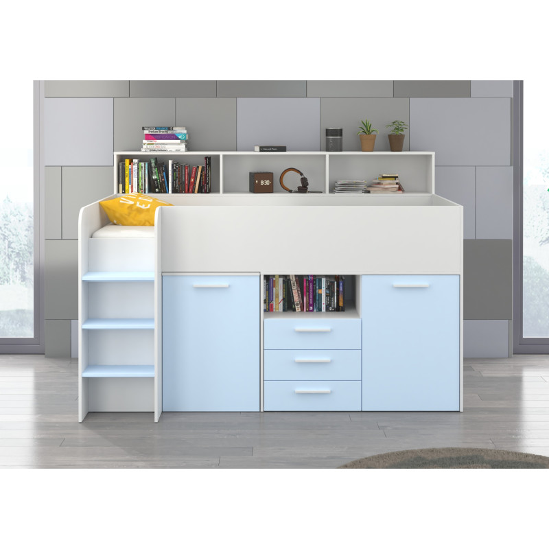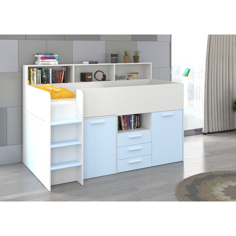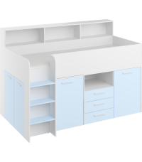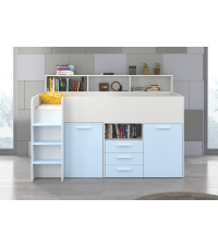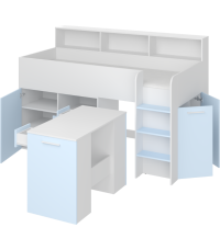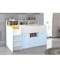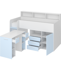 Łóżko z biurkiem Neo L i szufladami Biały/Błękit