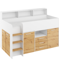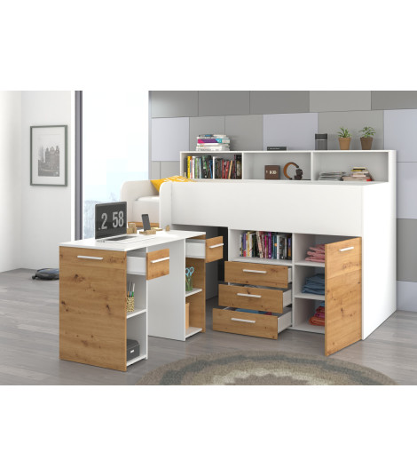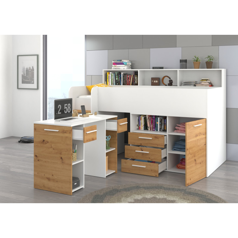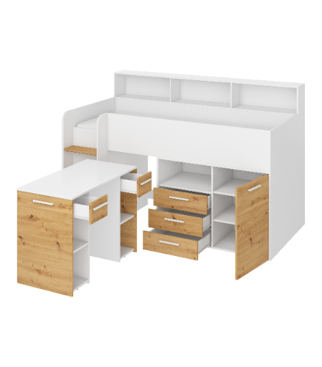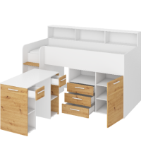 Łóżko z biurkiem Neo L i szufladami Biały/Dąb Artisan