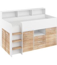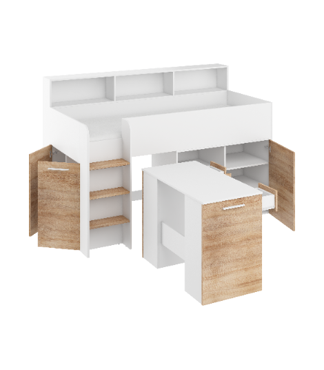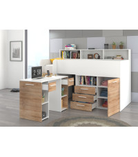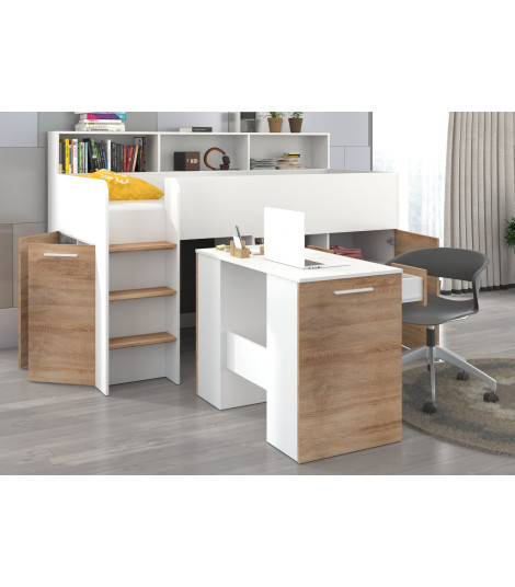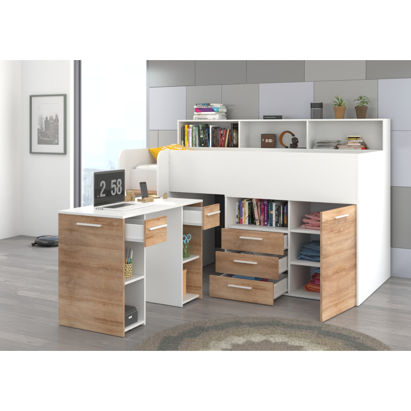 Łóżko z biurkiem Neo L i szufladami Biały/Sonoma jasna