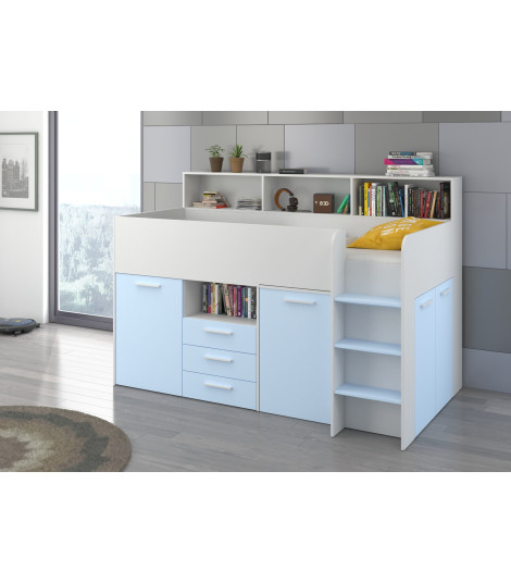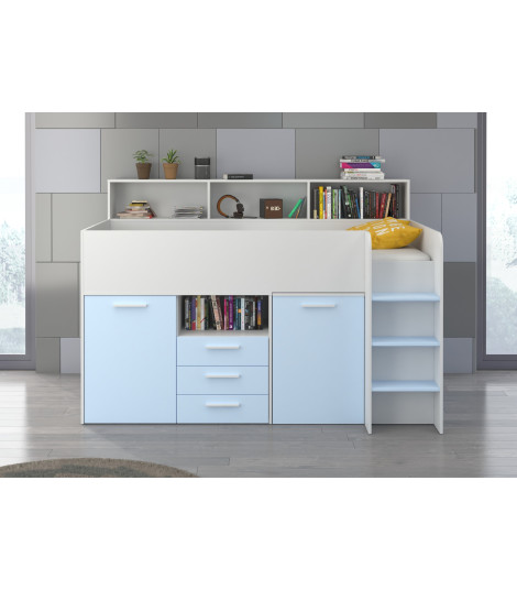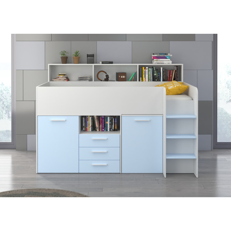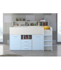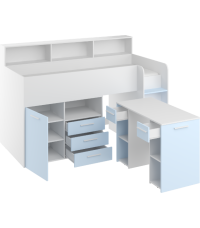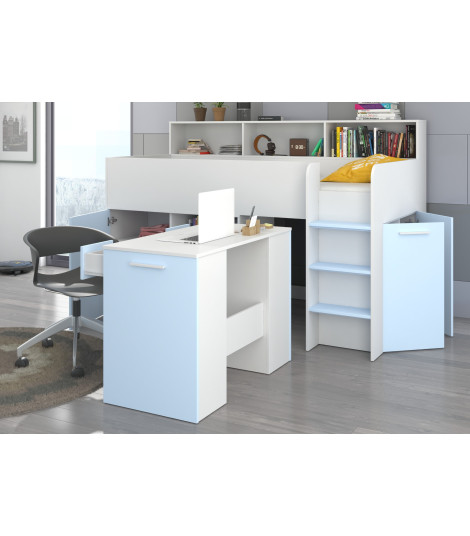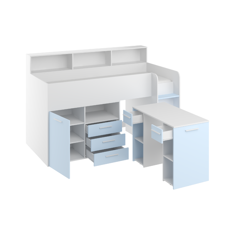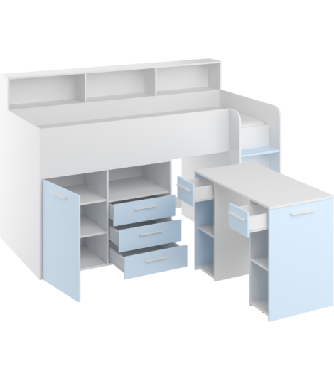 Łóżko z biurkiem Neo P i szufladami Biały/Błękit