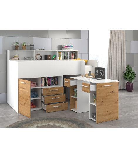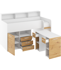 Łóżko z biurkiem Neo P i szufladami Biały/Dąb Artisan