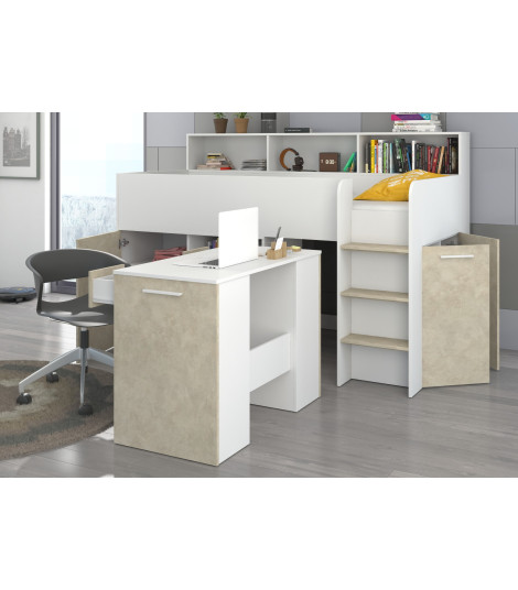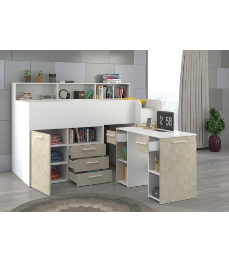Łóżko z biurkiem Neo P i szufladami Biały/Granada migdał