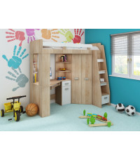 Łóżko piętrowe Antresola P z biurkiem i szafą Sonoma jasna/Biały