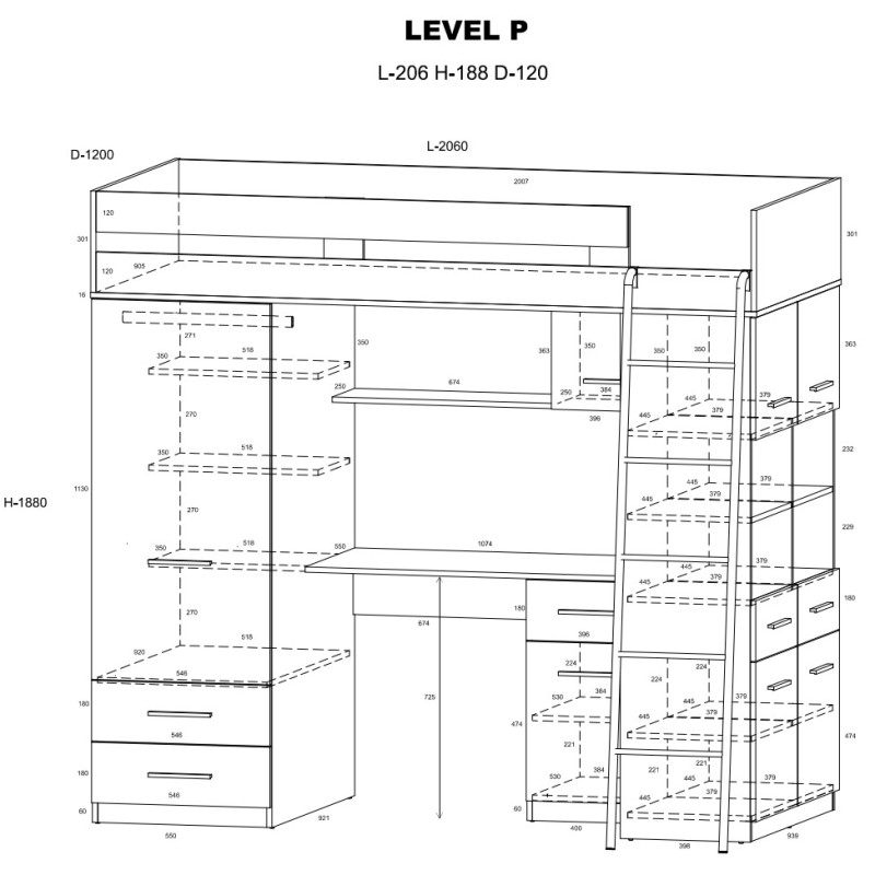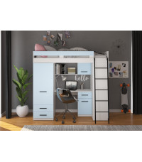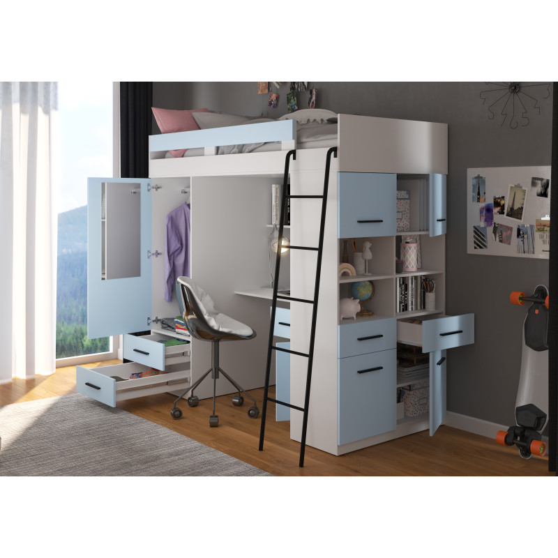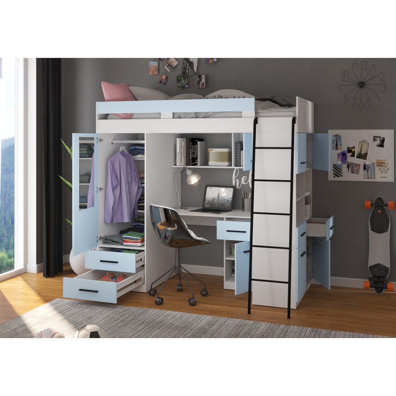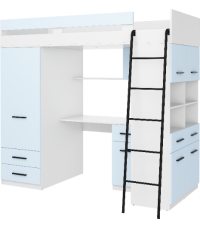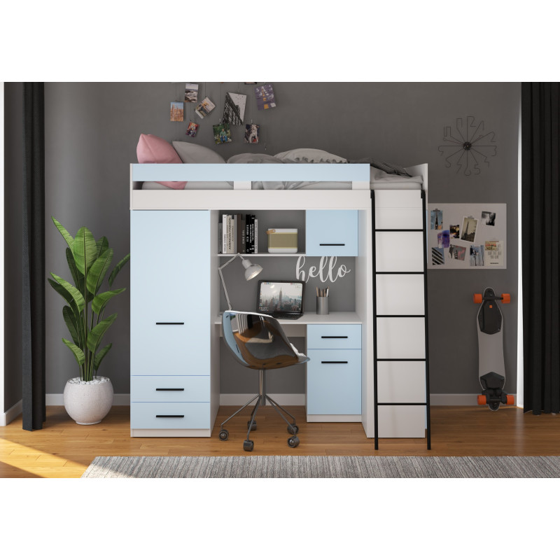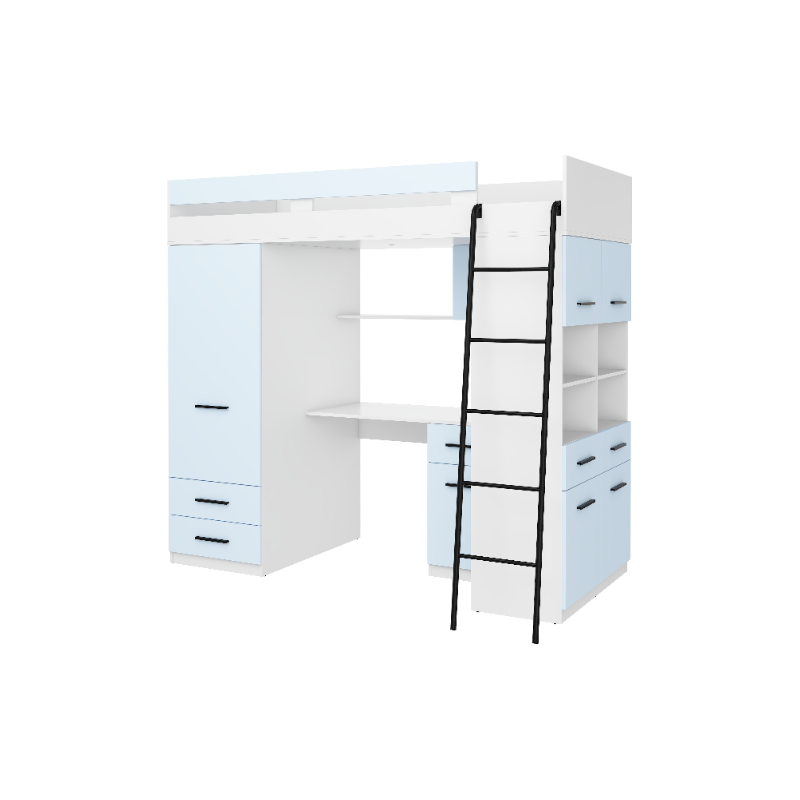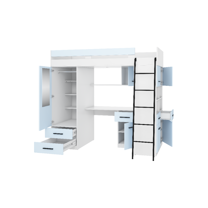 Antresola Level P w kolorze biało-błękitnym to idealne rozwiązanie do pokoju dziecka lub nastolatka, łączące funkcjonalność i nowoczesny design. Przemyślany układ przestrzeni z łóżkiem, biurkiem, szafą i regałem pozwala maksymalnie wykorzystać każdy centymetr pokoju – wszystko w jednej, stylowej konstrukcji.