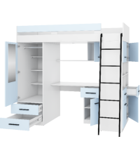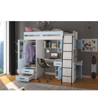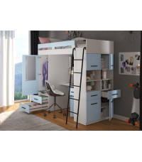 Łóżko piętrowe Level P z biurkiem i szafą Biały/Błękit