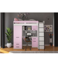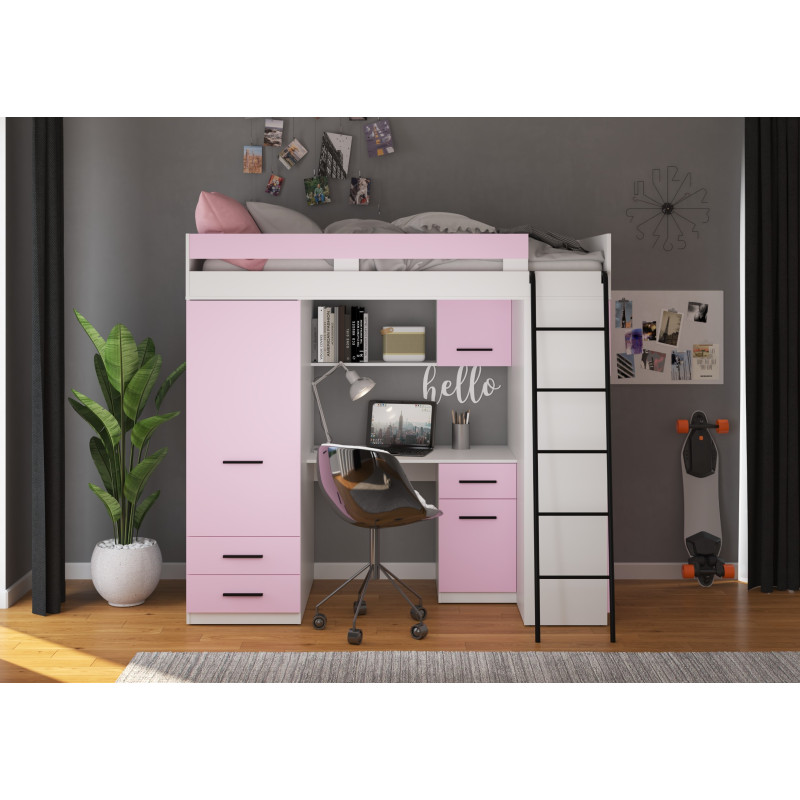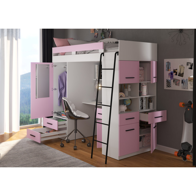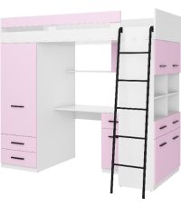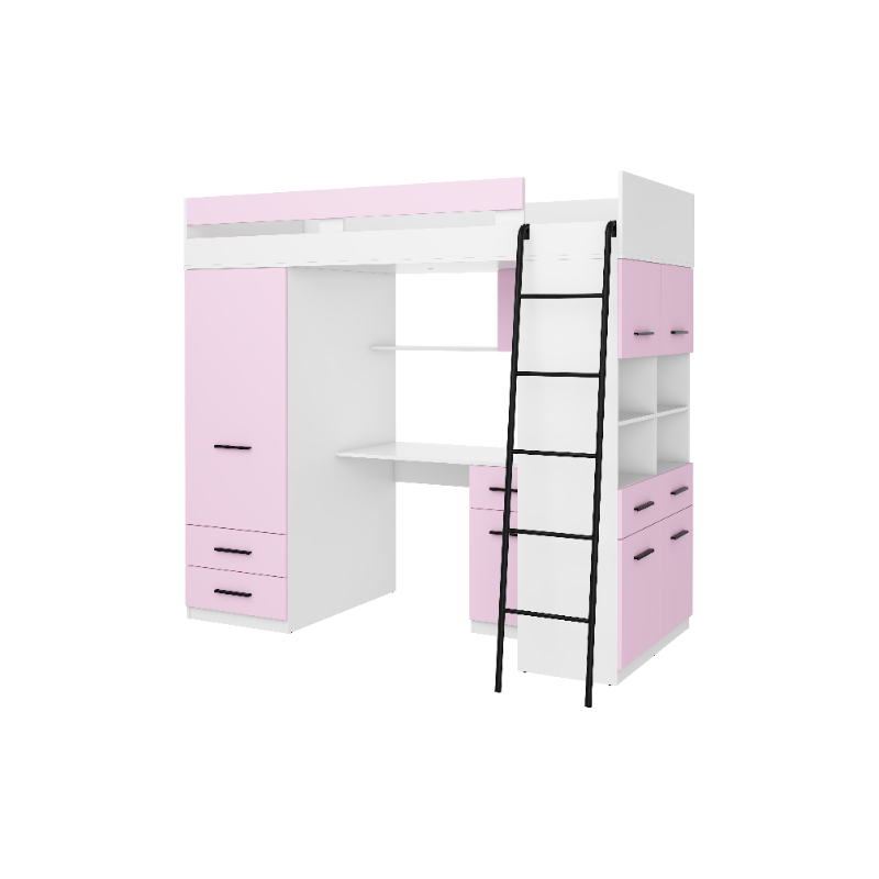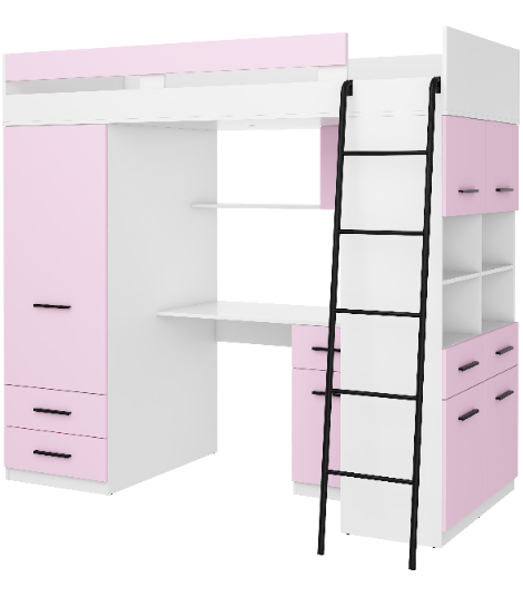 Antresola Level P w wersji Biały/Lawenda to połączenie funkcjonalności z subtelnym, dziewczęcym akcentem kolorystycznym. Wielofunkcyjny mebel łączy w sobie łóżko, biurko, szafę i regał, idealnie dopasowując się do potrzeb młodszych domowników – wszystko w jednej, stylowej formie.