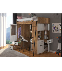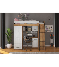 Łóżko piętrowe Level P z biurkiem i szafą Craft złoty/Craft biały