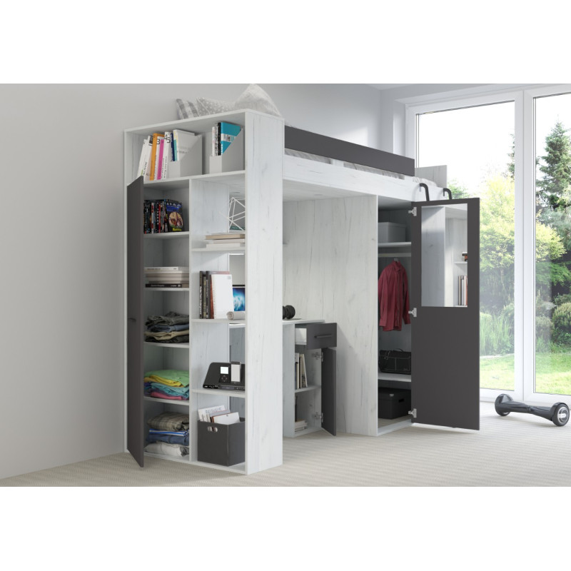 Łóżko piętrowe Verana P z biurkiem i szafą Craft biały/Grafit
