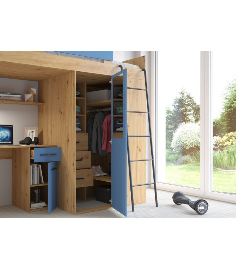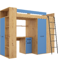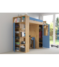 Łóżko piętrowe Verana P z biurkiem i szafą Dąb Artisan/Niebieski