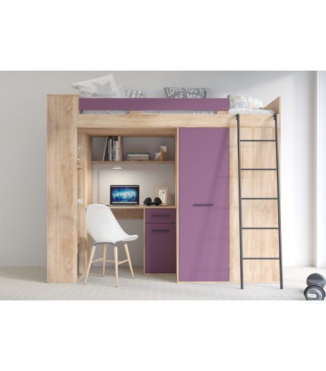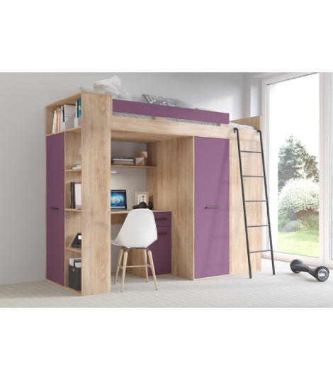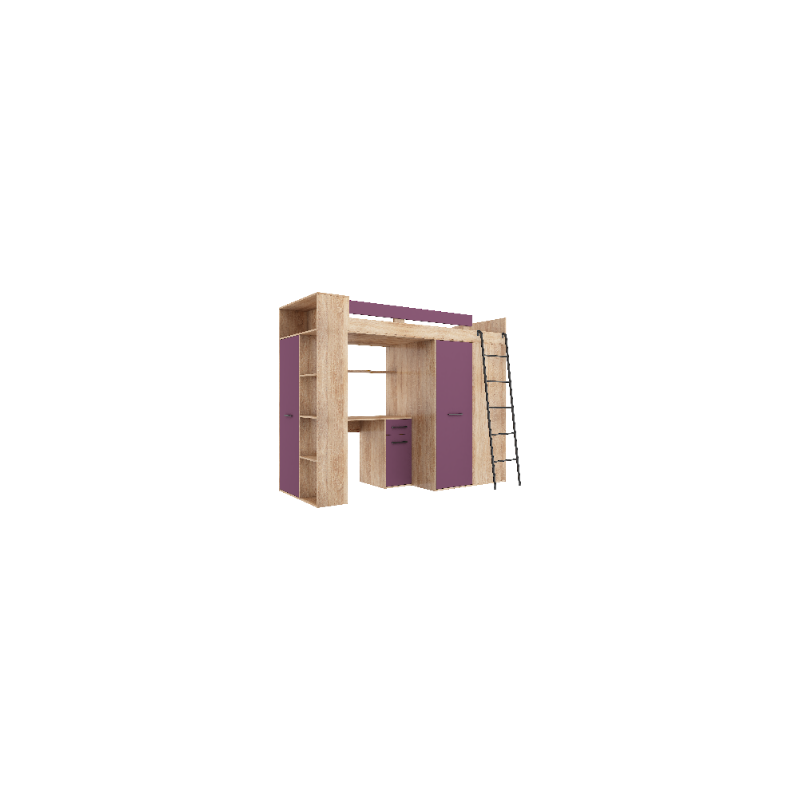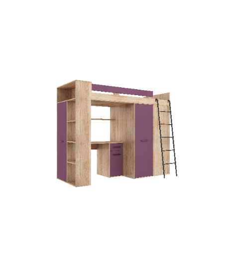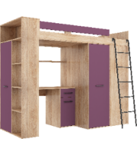 Łóżko piętrowe Verana P z biurkiem i szafą Sonoma jasna/Fiolet