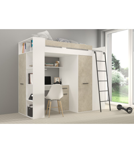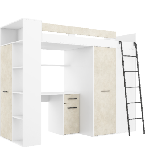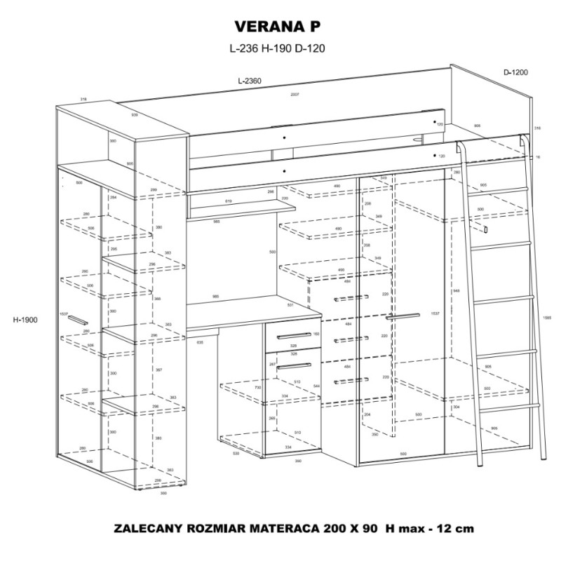 Verana P to funkcjonalne łóżko piętrowe z antresolą, które zapewnia miejsce do spania, nauki i przechowywania w jednej zwartej formie. Jasna kolorystyka i praktyczne rozwiązania sprawiają, że to idealny wybór do pokoju dziecka lub nastolatka.
