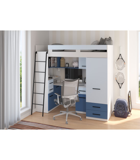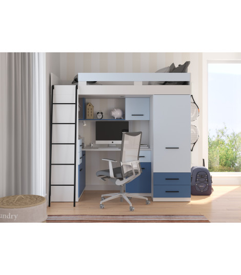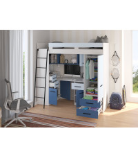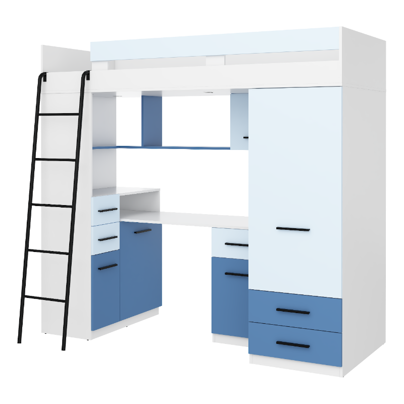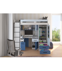 Łóżko piętrowe Smyk L z biurkiem i szafą Biały/Błękit/Niebieski