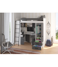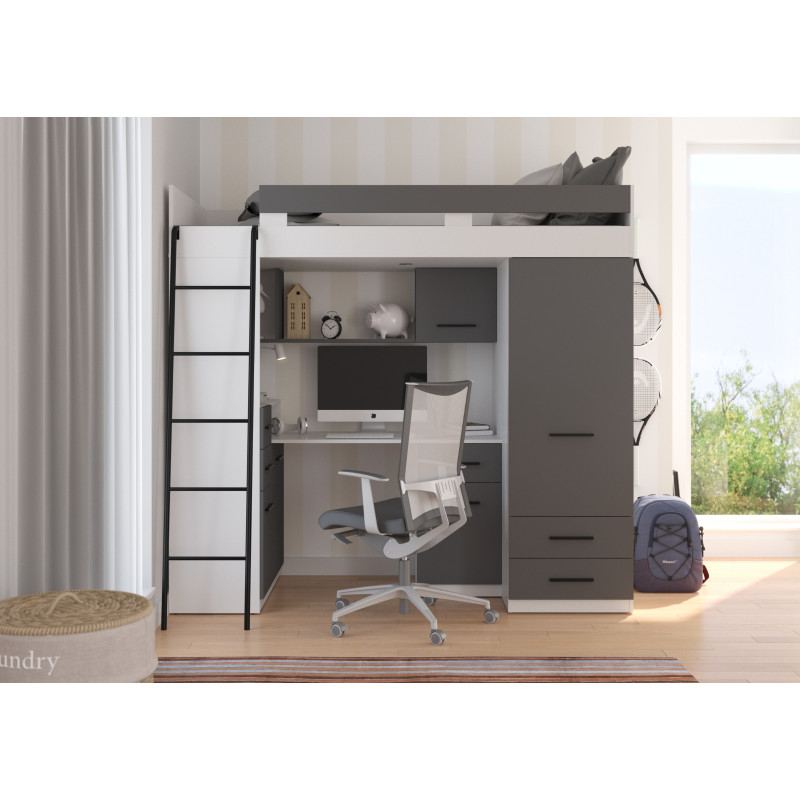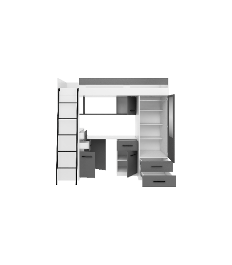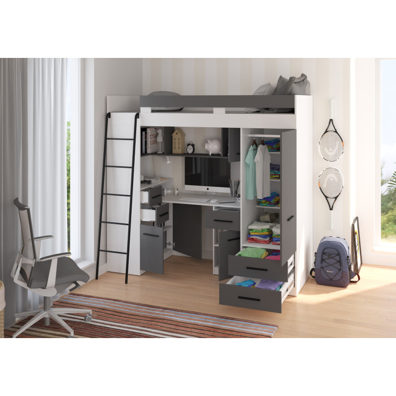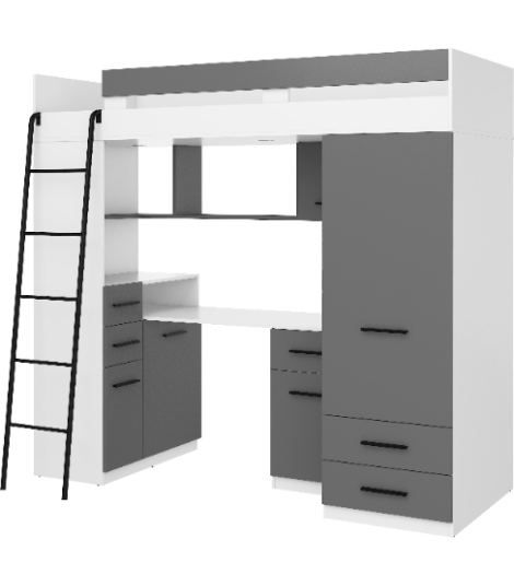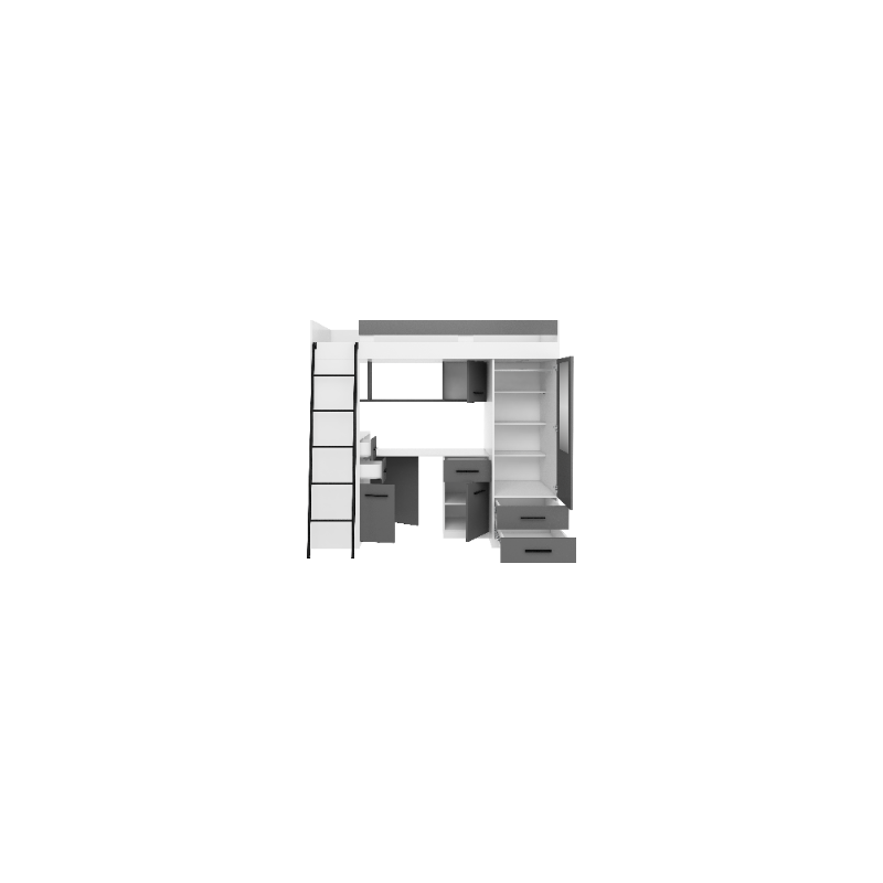 Łóżko piętrowe Smyk L z biurkiem i szafą Biały/Grafit