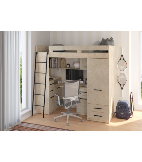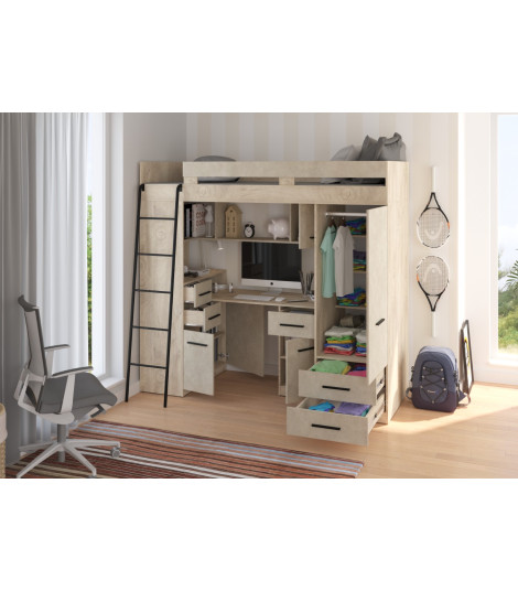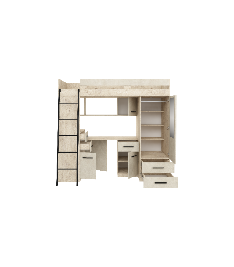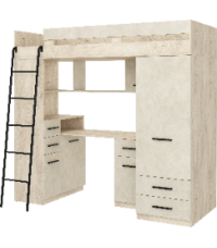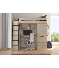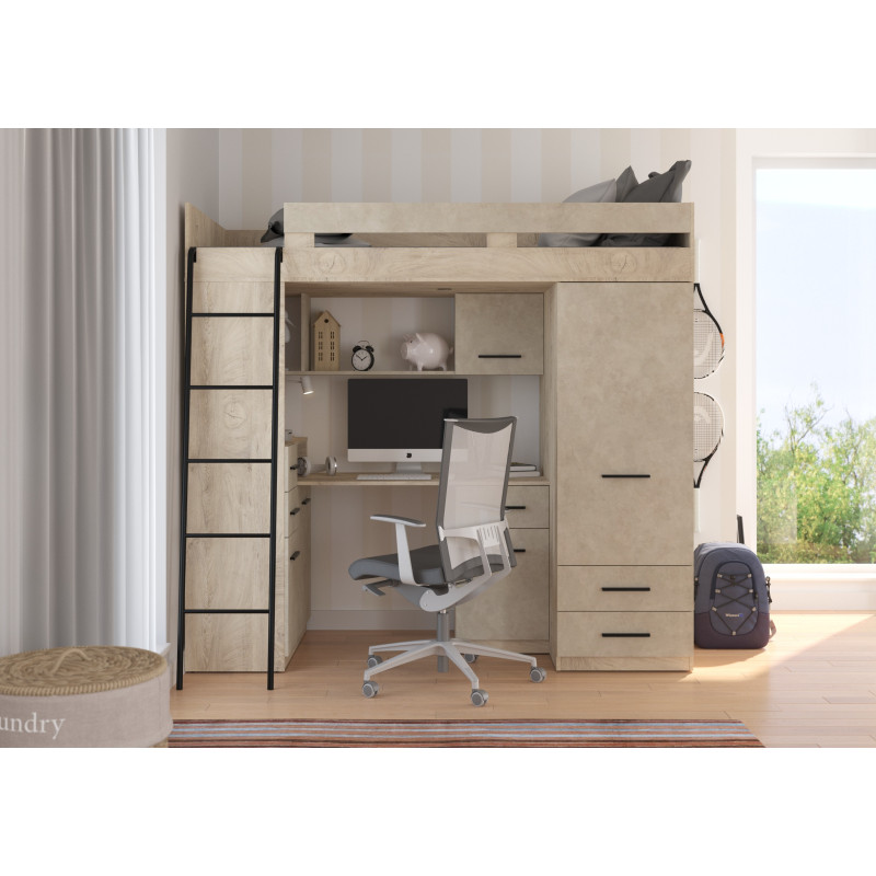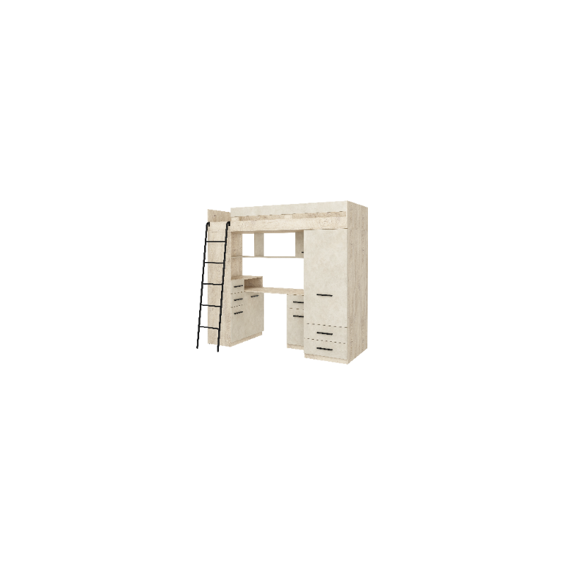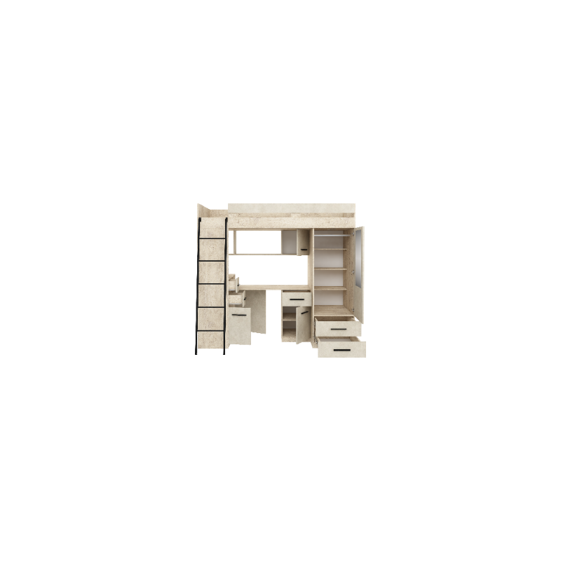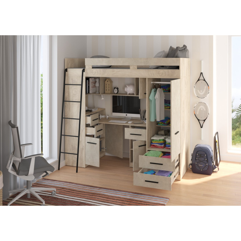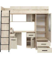 Łóżko piętrowe Smyk L z biurkiem i szafą Dąb Endgrain/Granada migdał