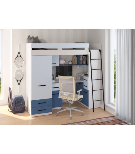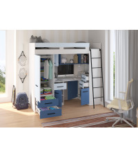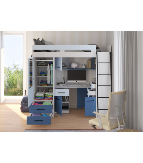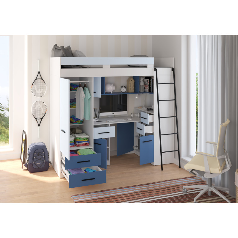 Łóżko piętrowe Smyk P z biurkiem i szafą Biały/Błękit/Niebieski