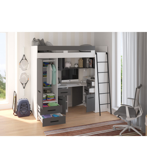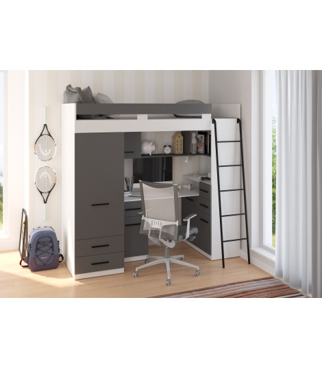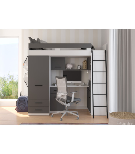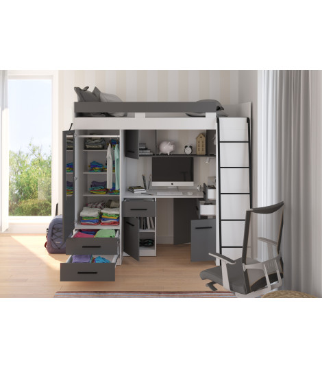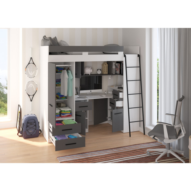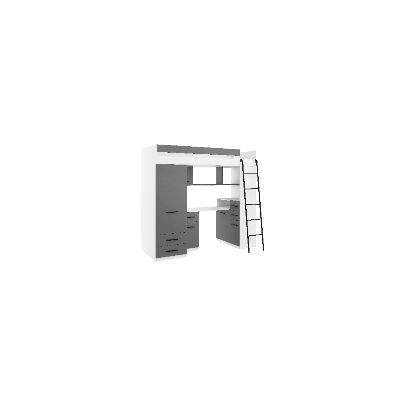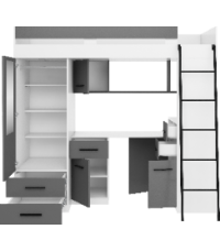 Łóżko piętrowe Smyk P z biurkiem i szafą Biały/Grafit