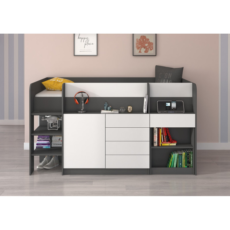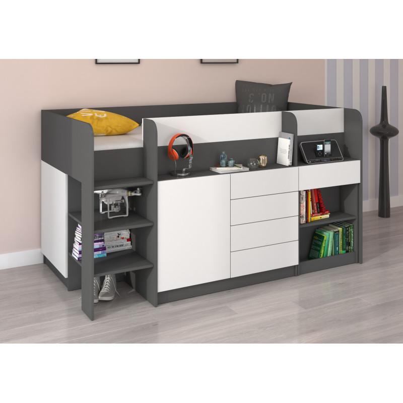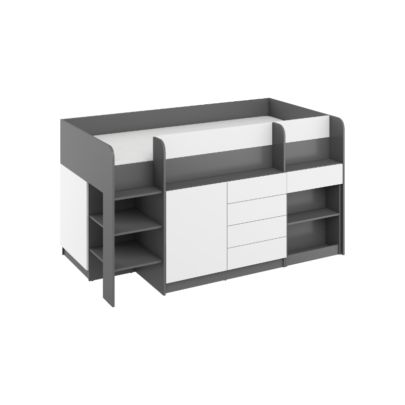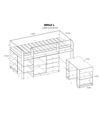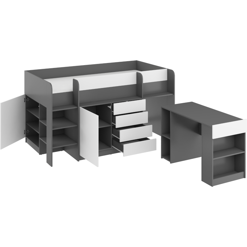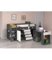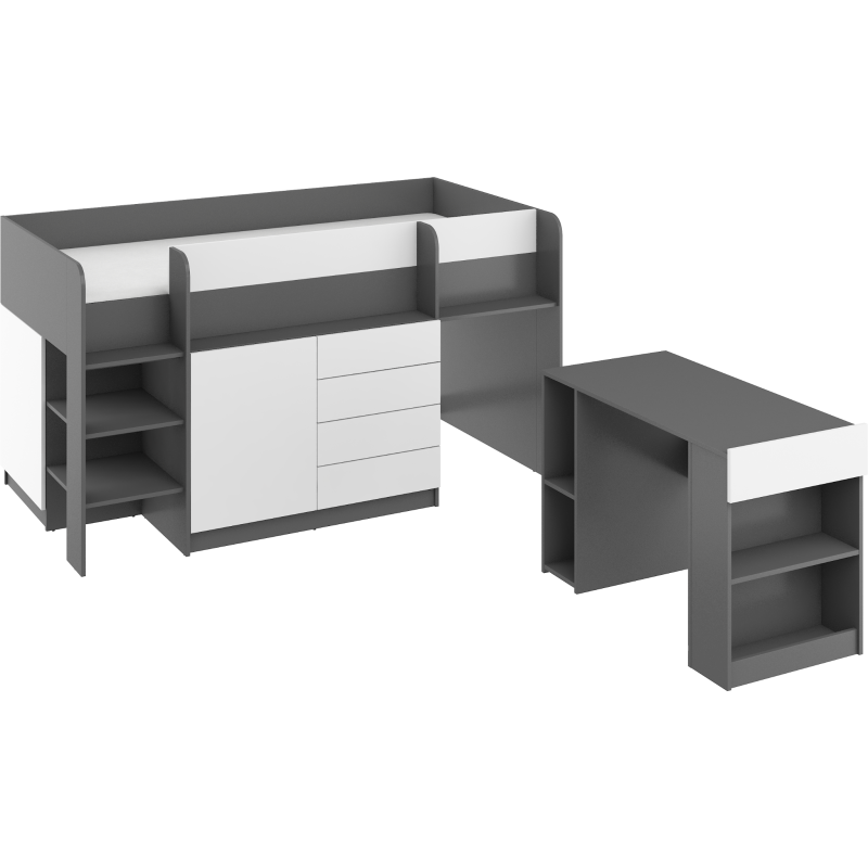 Łóżko piętrowe z biurkiem Smile lewe Grafit/Biały