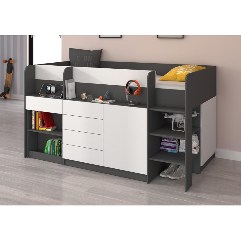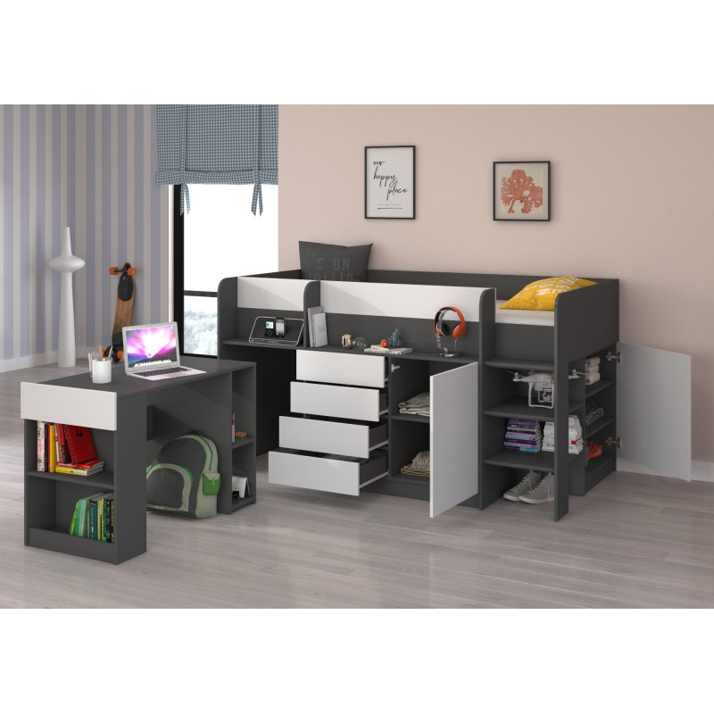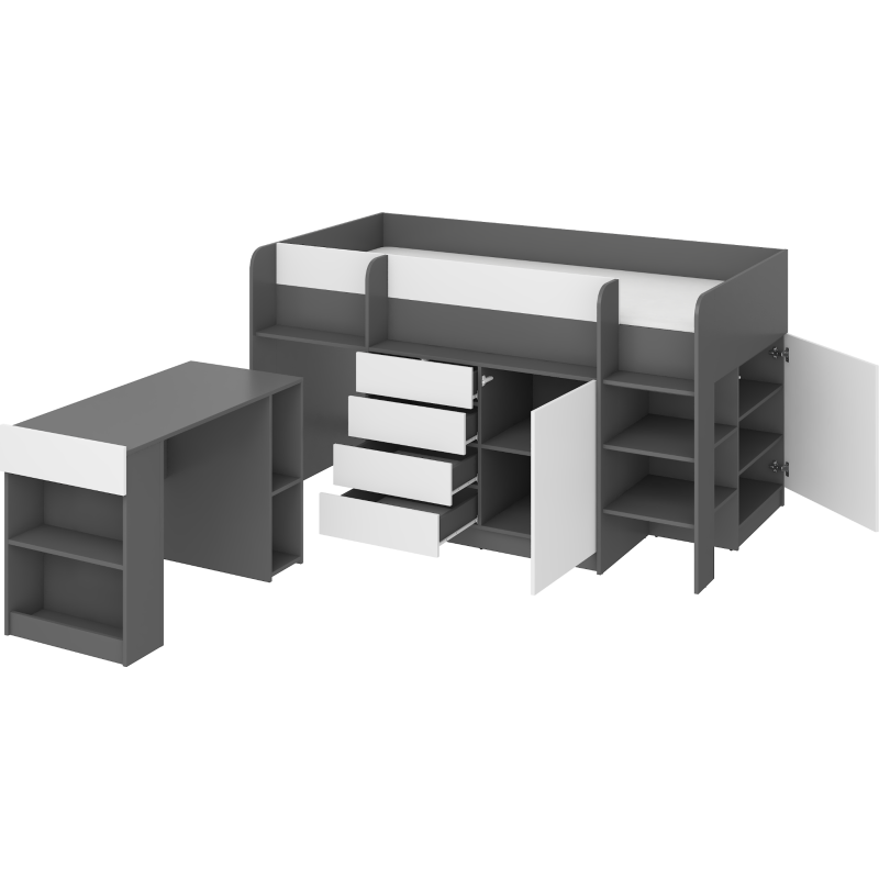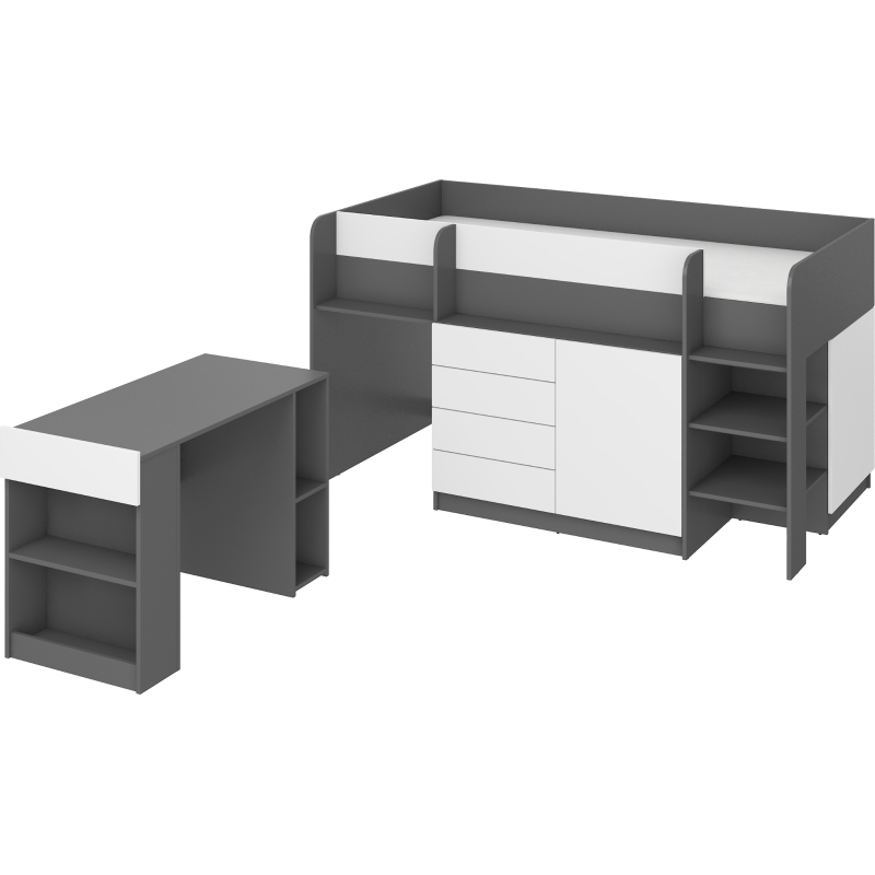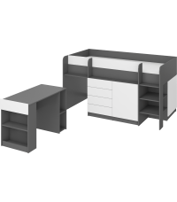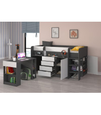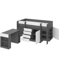 Łóżko piętrowe z biurkiem Smile prawe Grafit/Biały
